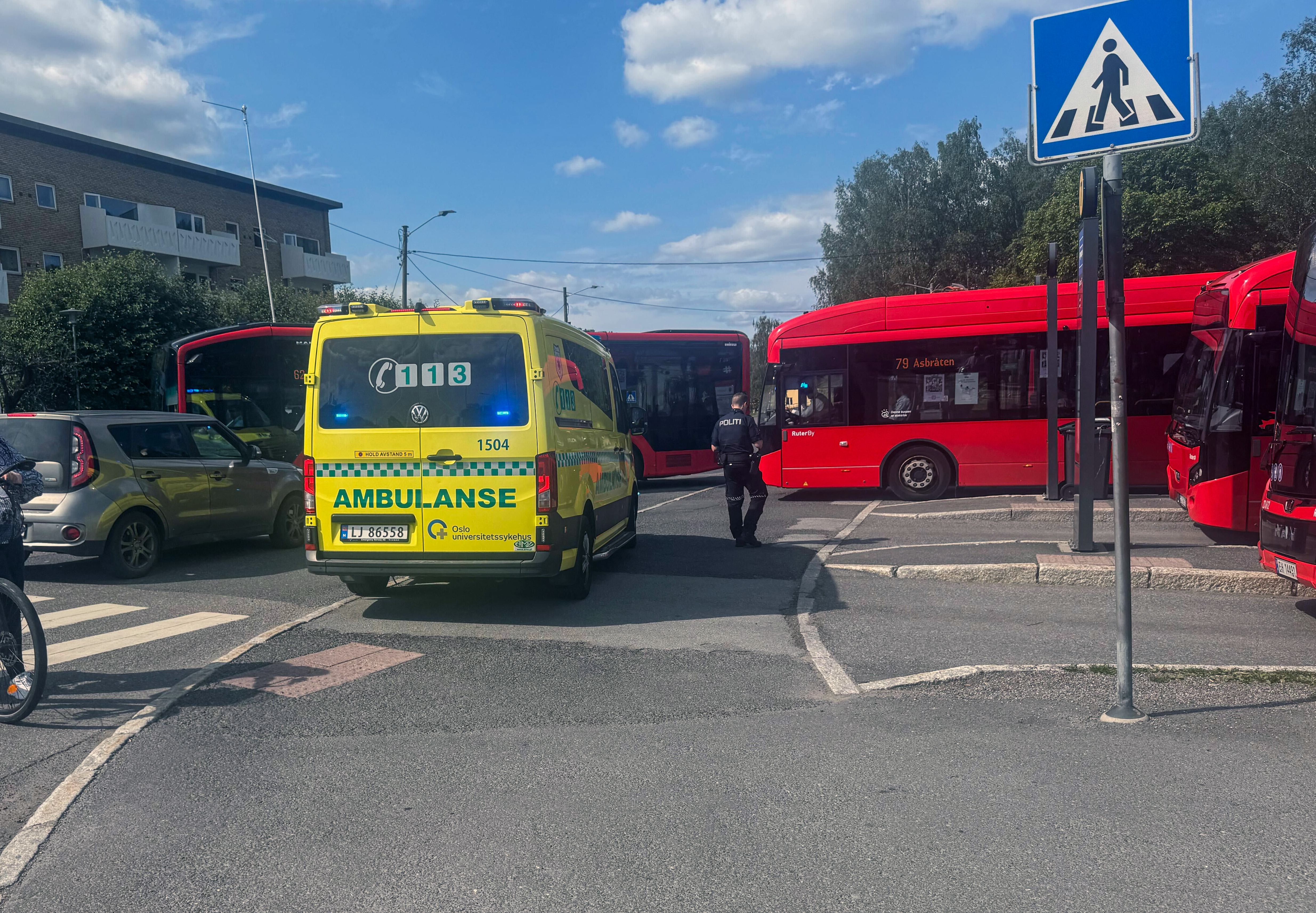 – Politiet og ambulanse er på stedet, hvor en bil har kjørt på en dame i mindre hastighet. Det er kontroll, og det er ingen trafikale problemer. Skadene beskrives ikke som livstruende, sier Anders Ås, operasjonsleder.