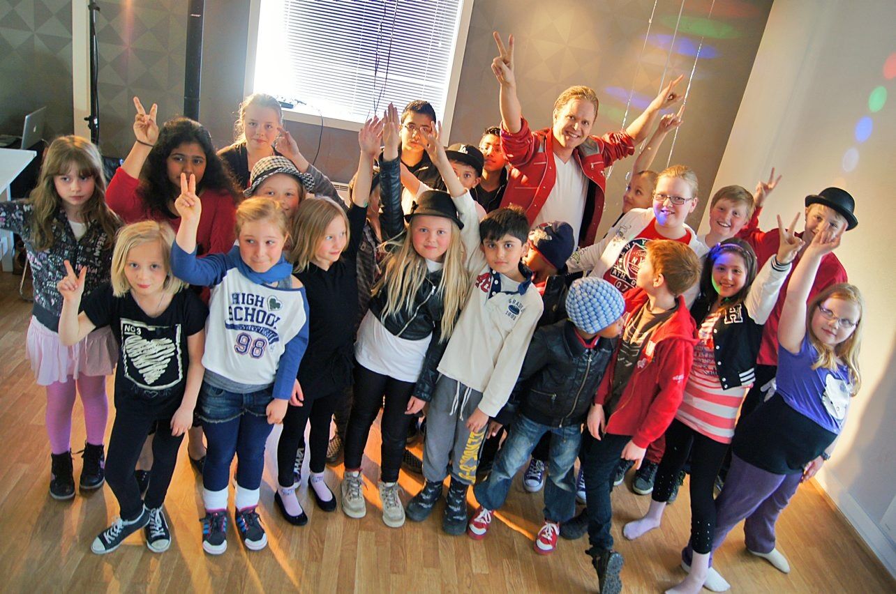 Mange barn fra Teisen har i hele var lært a danse som Michael Jackson pa Vaskeriet kulturhus. Jonas og Ida synes begge Beat It er kongens kuleste lat.