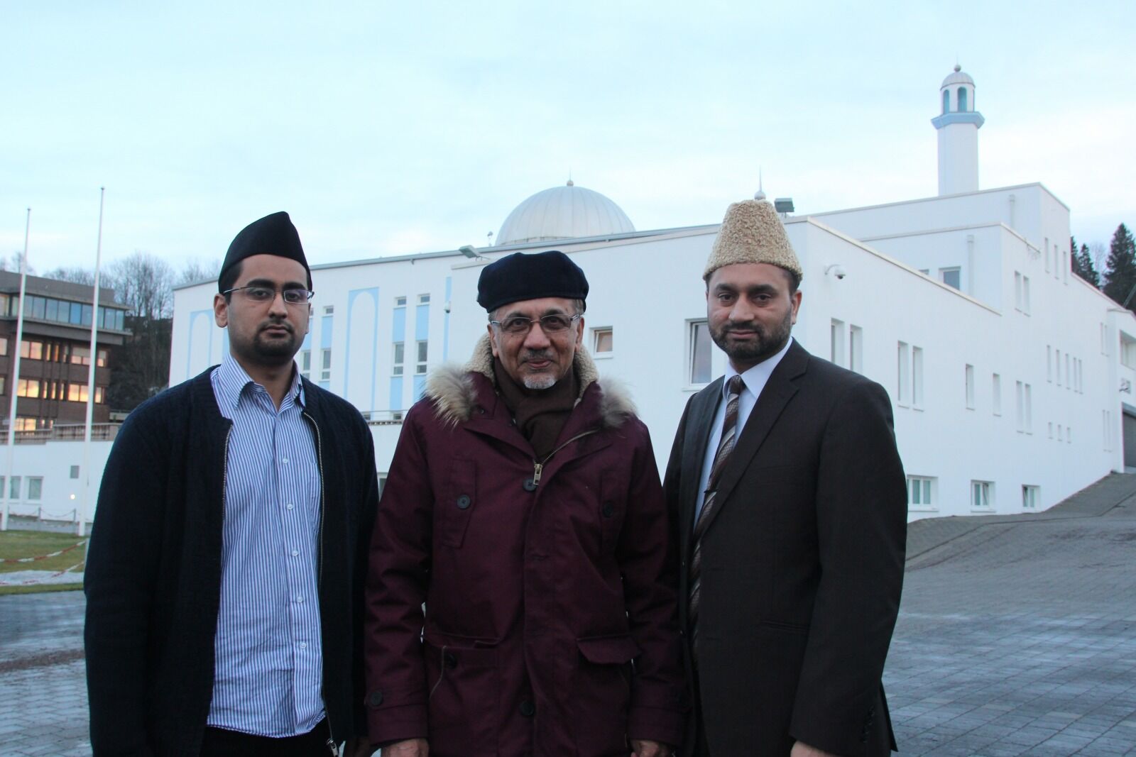 TAR AVSTAND: Ahmadiyya-muslimene på Furuset tar sterk avstand fra angrepene i Paris. De er opptatt av å fortelle at radikal islamisme ikke har noe med vanlige muslimer å gjøre. Her er imam Haroon Chaudry, sekretær Mahmood Ahmed Ayaz og imam Shahid Mahmood Kahloon. Foto:Bilde 1 av 1