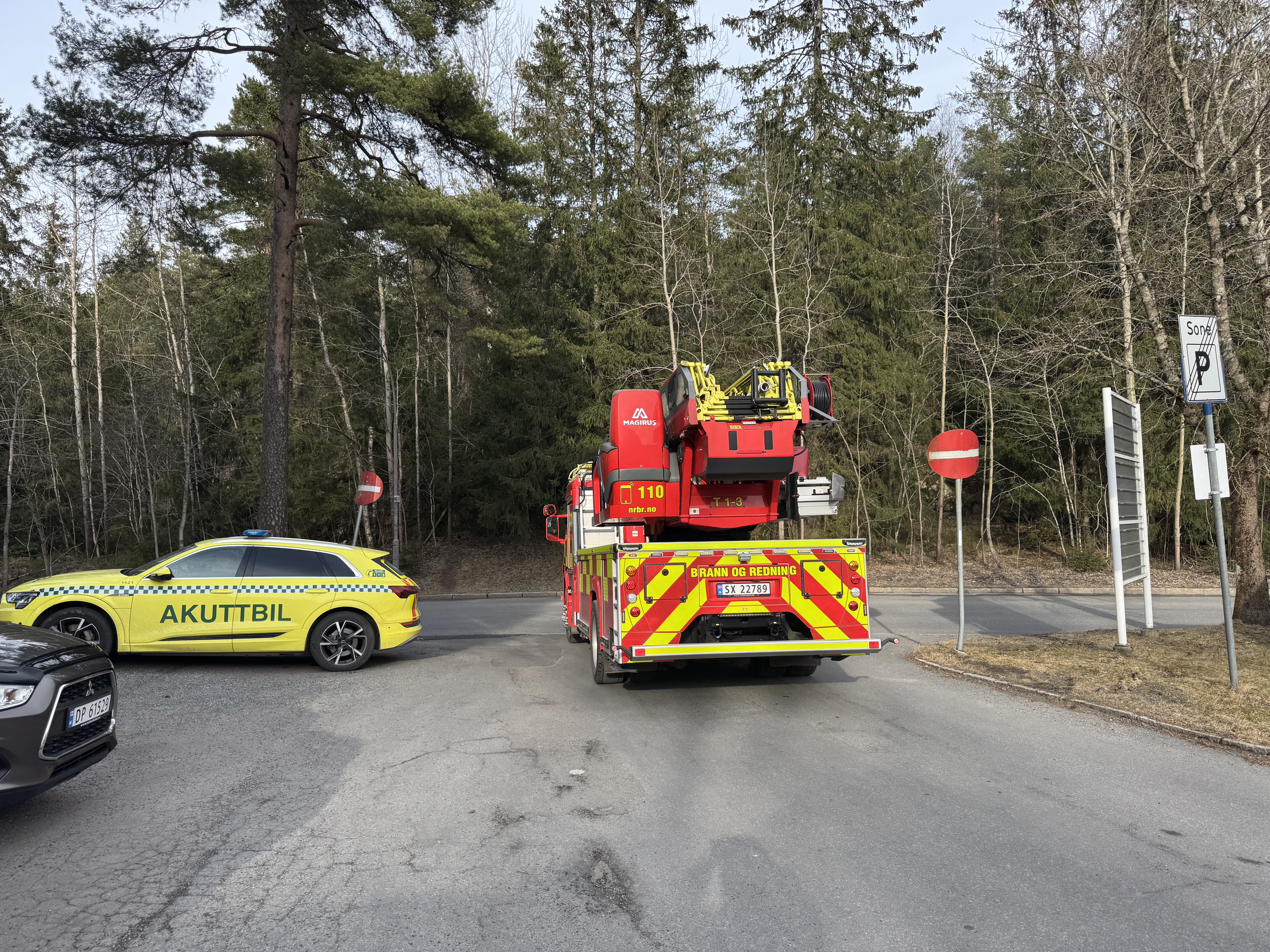 Nødetatene er fremme. Røykdykkere er på vei inn i blokka.