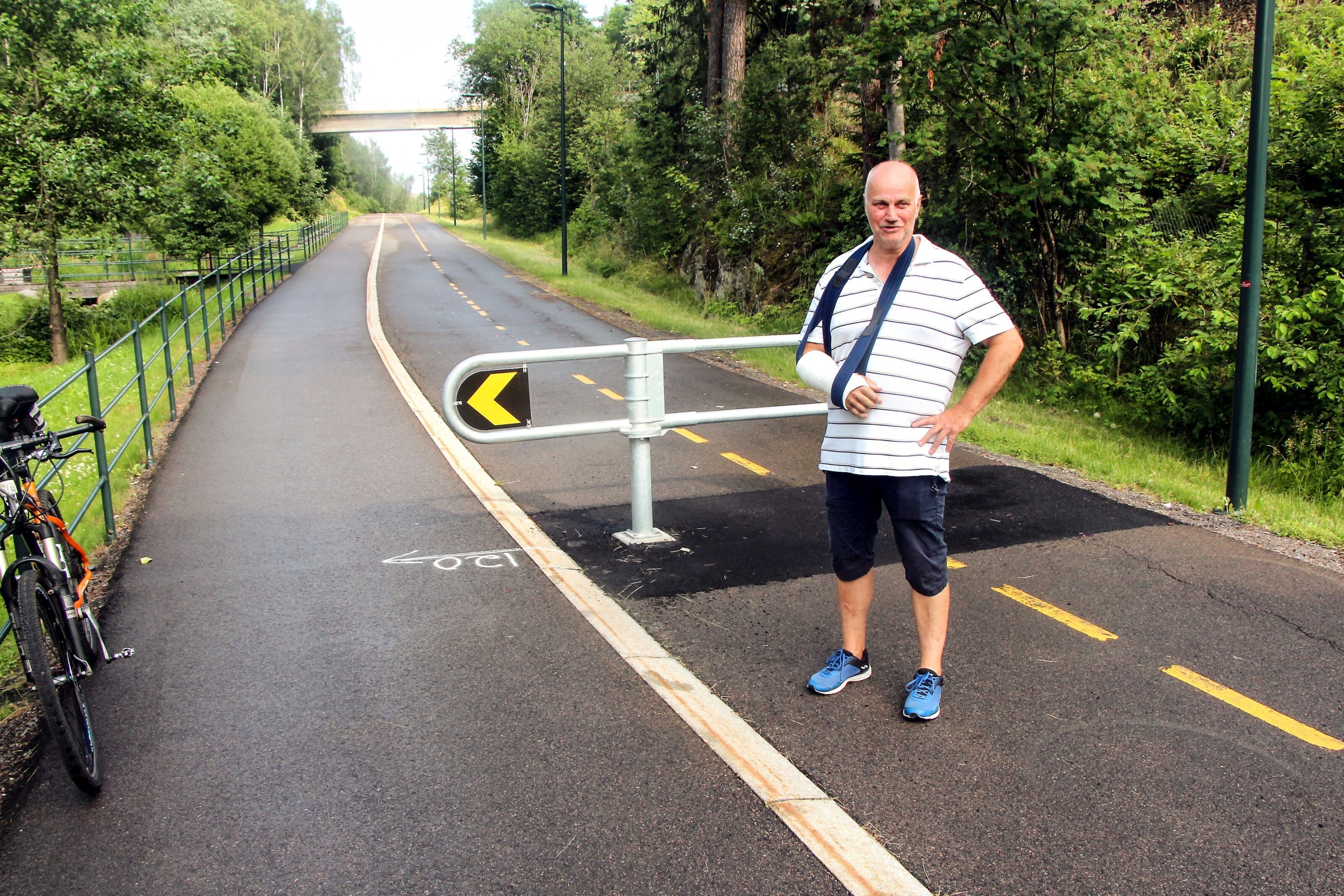 Mandag skulle Svenn Larsen sykle den samme ruta han har gjort så mange ganger, men denne gangen endte det med brukket arm og sykehusinnleggelse.