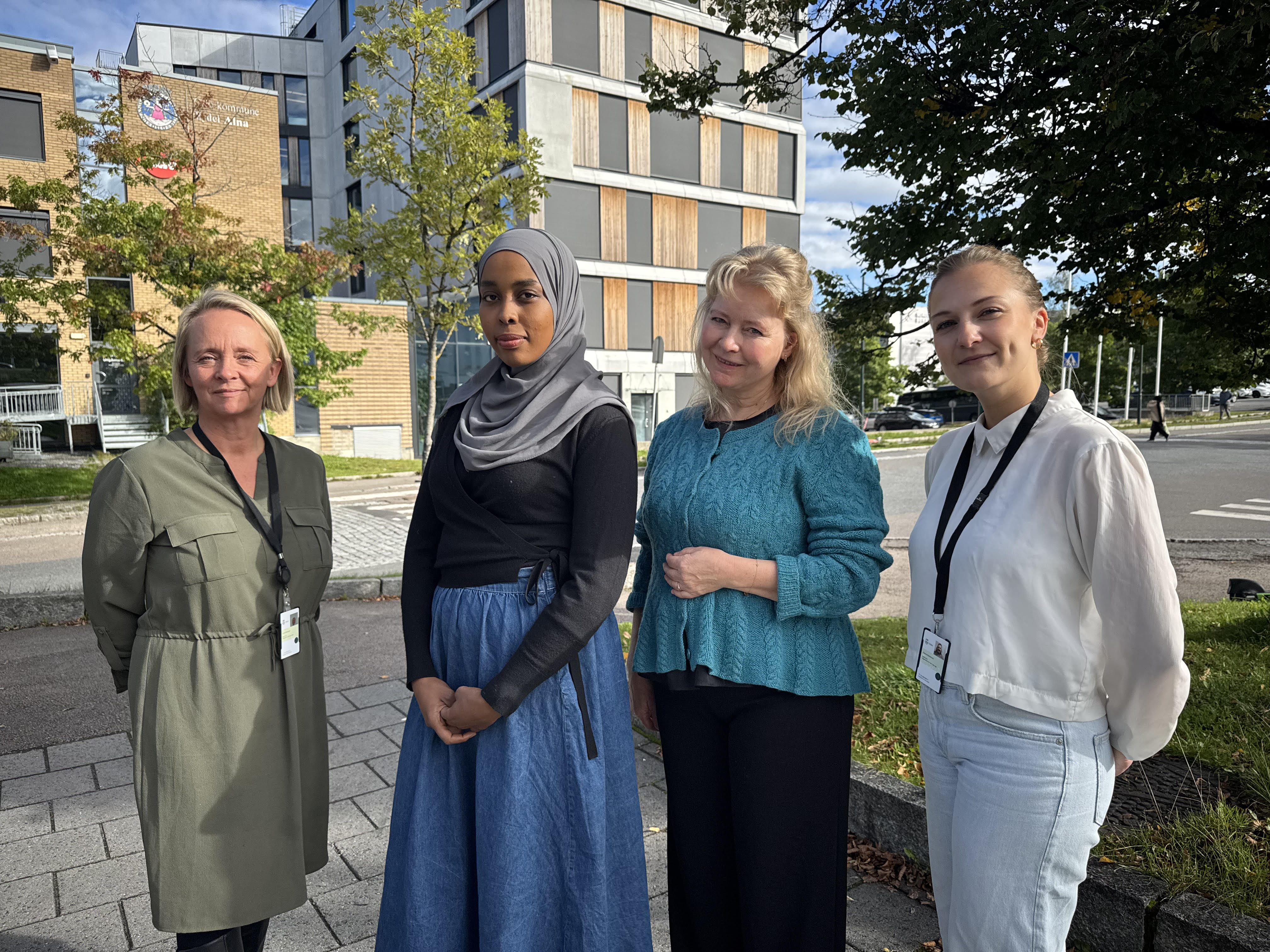 NYTT TILBUD: Anita Grønvold (f.v), Zeynep Adam, Kathrine Falk og Dijana Karanovic er familieveiledere fra bydelene Alna og Grorud. Sammen jobber de for å skape et trygt og inkluderende tilbud for foreldre til barn med funksjonsvariasjon.