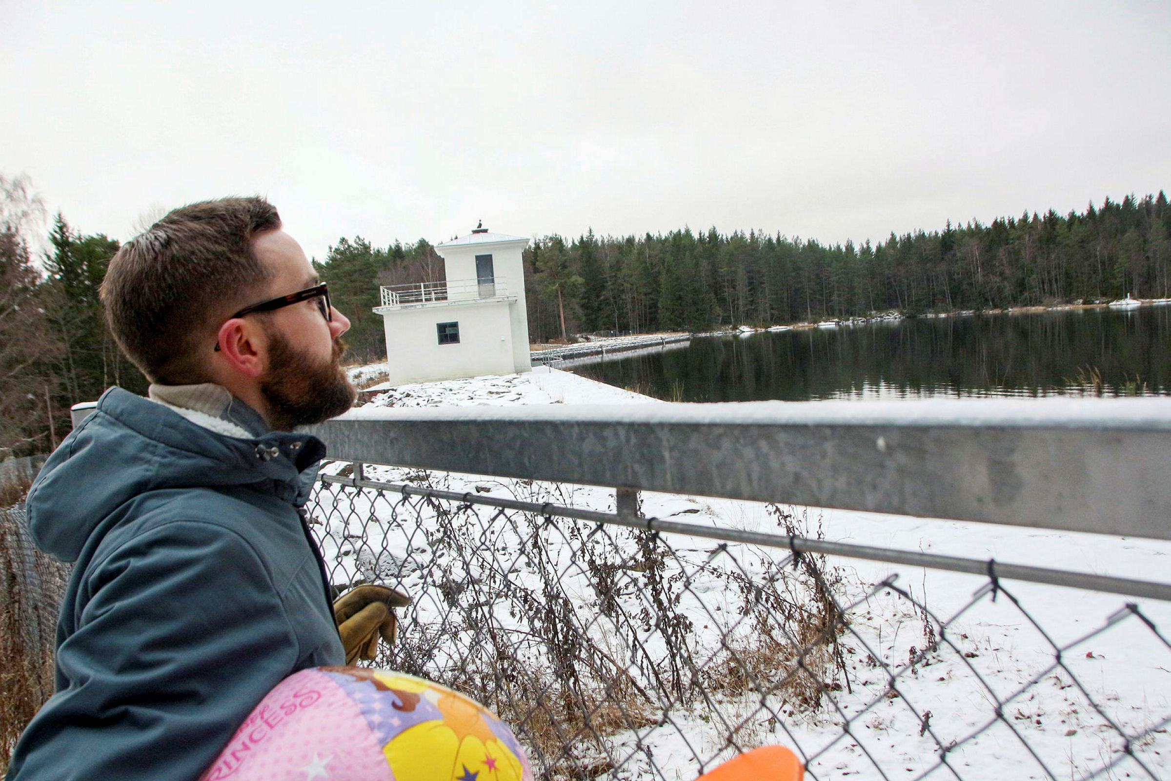 DRØMMER: I dag er bading i Alunsjøen bare en drøm, og Ola Wolff Elvevold med badeballen må stoppe ved gjerdet. Han er en av dem som ønsker at Alunsjøen og Breisjøen åpnes for svømming, lek og moro når vannene ikke lenger er nødvendige drikkevannsreserver. Foto: Ørjan BrageBilde 1 av 1