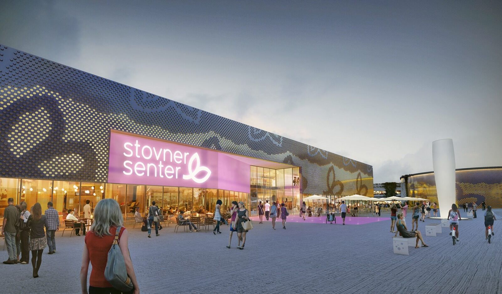 Slik vil det se ut når Stovner senter utvider. Et urbant torg med servering kommer på plass. I tillegg jobber Oslo kommune med å etablere Linjeparken, som skal gå rett utenfor sentrets nye hovedinngang.