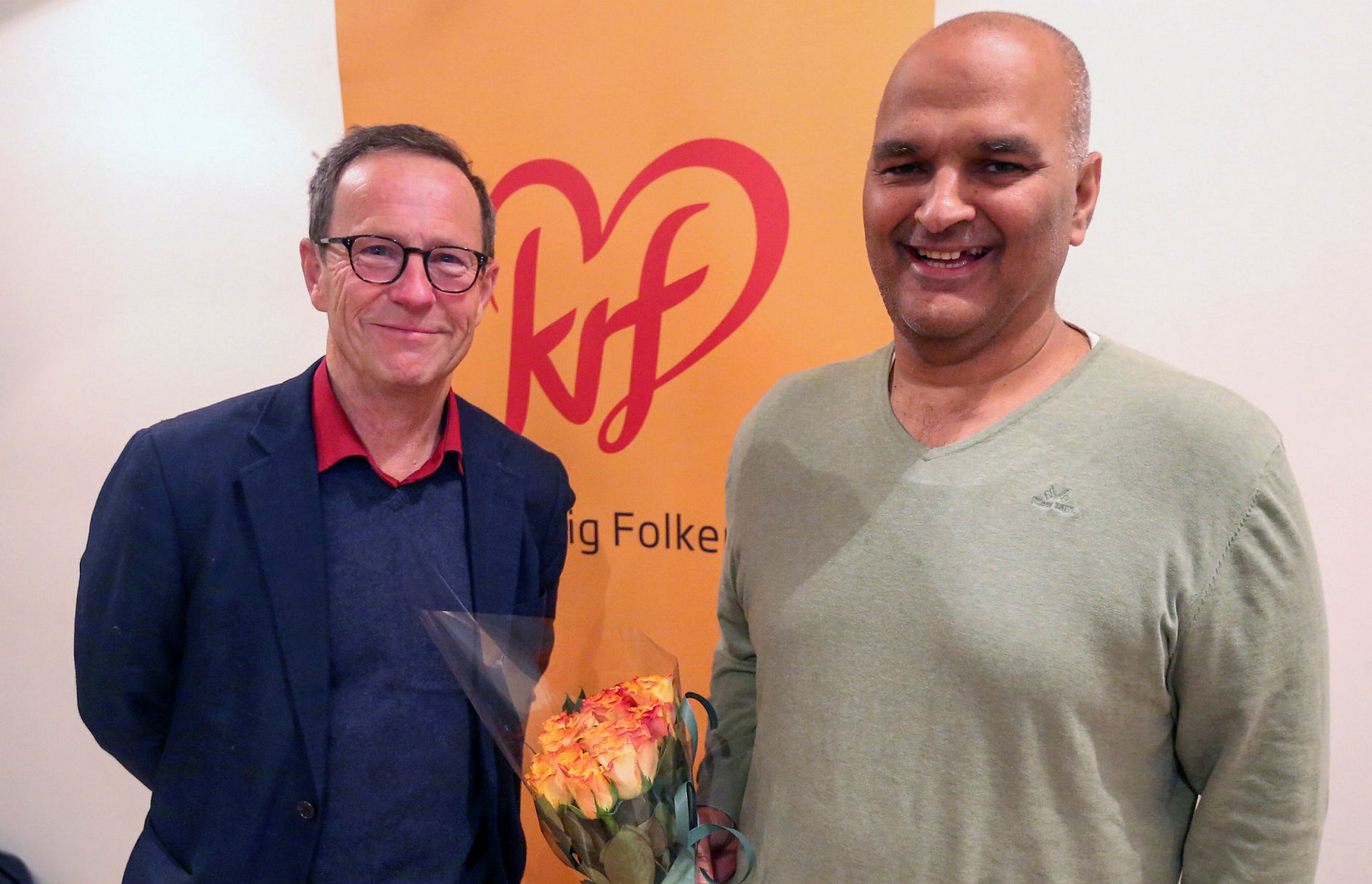 GOD TONE: Robert Wright og Rashid Nawaz kjenner hverandre godt og er faktisk ganske nære naboer på Stovner. Politisk og trosmessig står de i forskjellige leire, men det er intet hinder for å ha en del felles og ikke minst forståelse av at det er viktig å komme sammen til dialog på tvers av en del ulike synspunkter. Foto: Rolf E. WulffBilde 1 av 1