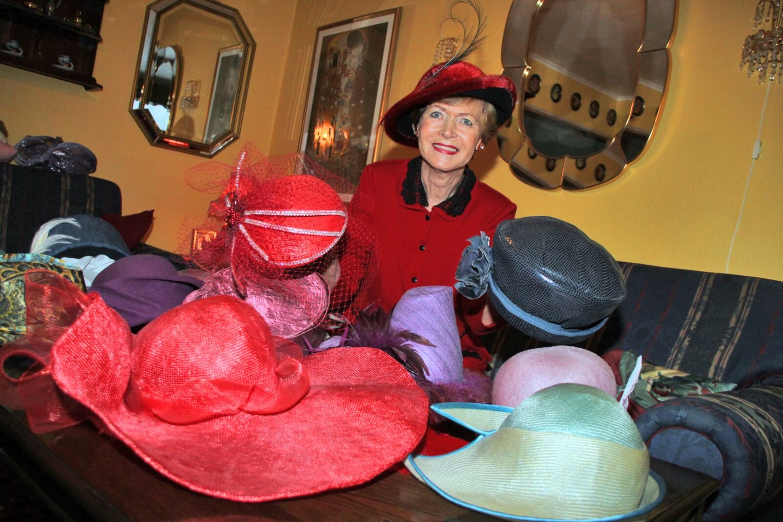 I en julepyntet leilighet sitter Åse Jeppestøl i matchende antrekk og hatt. Hun har samlet på hatter så lenge hun kan huske, og har nå over 70 stykker.