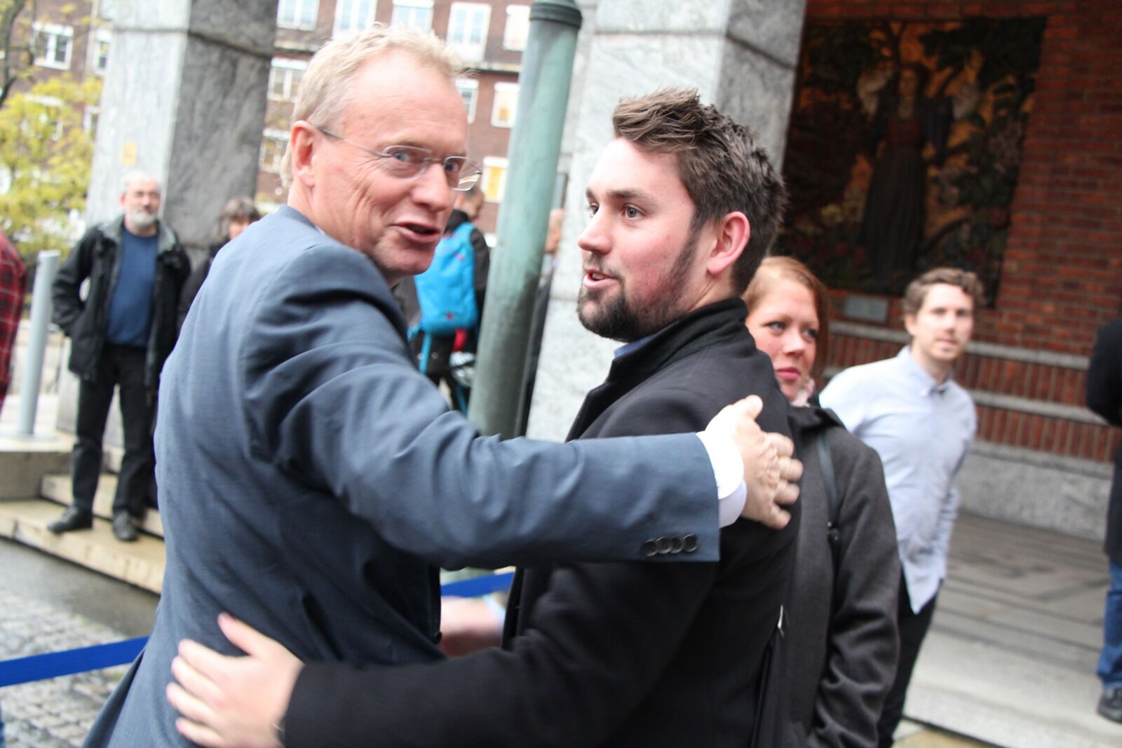 GOD KLEM: Raymond Johansen (Ap) skyndet seg bort til sønnen Sebastian Maira Johansen (23) etter å ha presentert den nye byregjeringa for å gi ham en god klem. Foto:Bilde 1 av 1 En veldig stolt sønn Caroline Bremer Publisert 26. okt 15 kl. 08:28 Del på sosiale medier Del Facebook Twitter E-post Abonnement