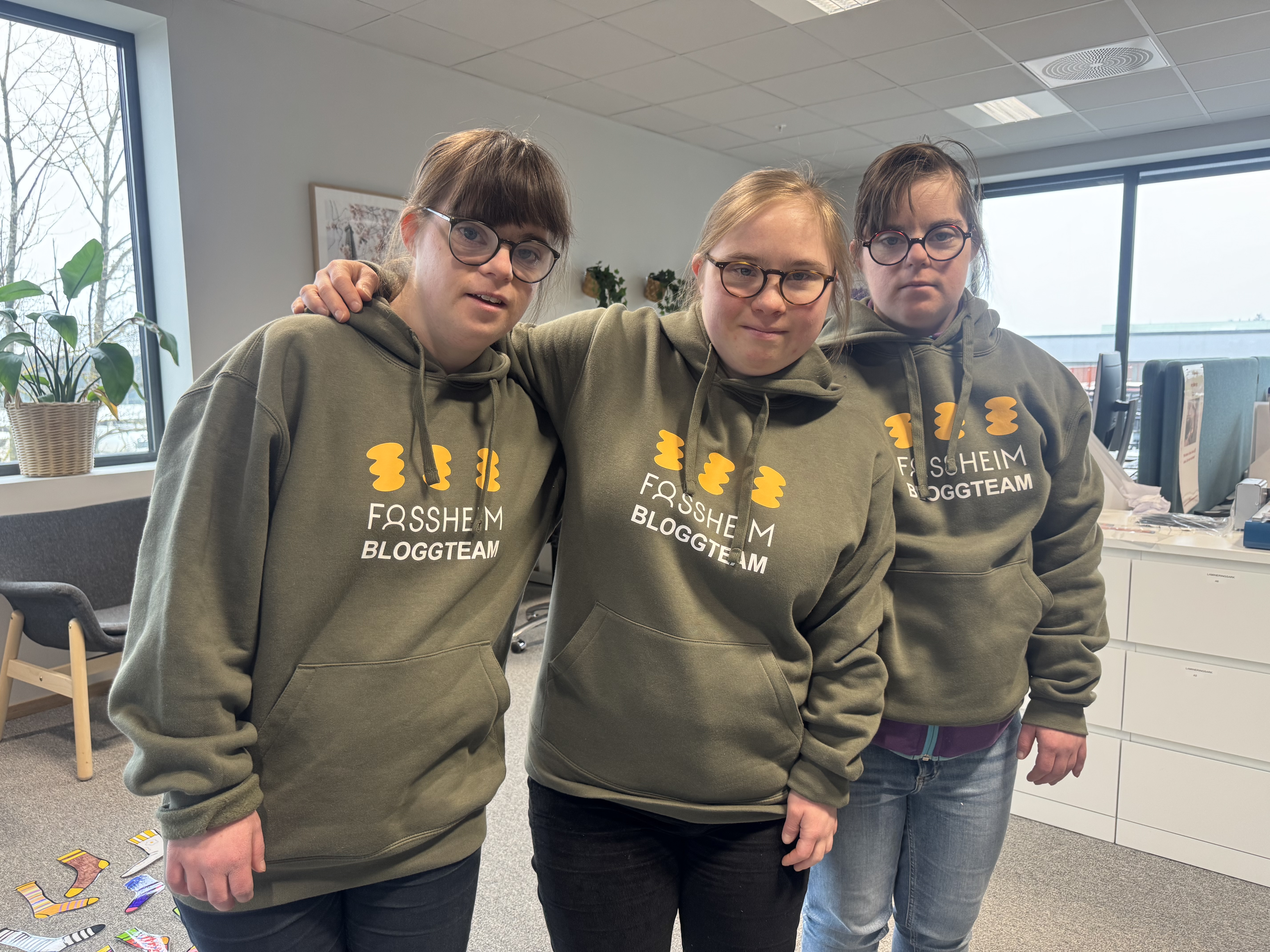 I HØYGIR: På Fossheim er det både travelt og spennende om dagen. Snart skal de feire Verdensdagen for Downs syndrom, noe som skal markeres med fest og dans på Sentralen, som Marit (t.v) og tvillingsøsteren Siri (t.h) er en del av. Sammen med Emilie er de tre av et team på seks som driver en blogg og blant annet besvarer spørsmål som omhandler Downs syndrom.Bilde 1 av 2