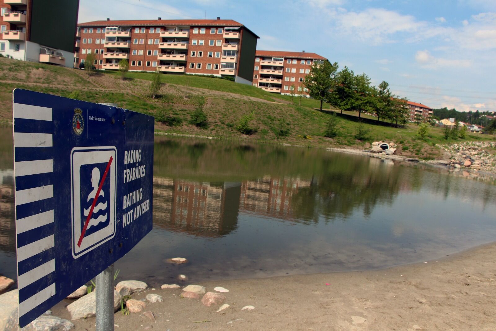FARLIG: Bydelen har satt opp et skilt med bading forbudt ved Bjerkedalen park. Dette er fordi det er farlig å bade i vannet så lenge kloakk renner igjennom Hovinbekken. Foto:Bilde 1 av 3For å se disse bildene må du ha et abonnementFor å se disse bildene må du ha et abonnement Vann- og avløpsetaten om Bjerkedalen park: Er kloakken under kontroll? Caroline Bremer Publisert 27. sep 14 kl. 08:00 Del på sosiale medier Del Facebook Twitter E-post Abonnement