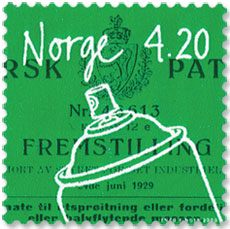 Helt riktig. I 2000 lanserte Posten Norge et frimerke med et motiv av en sprayboks under vignetten «Norsk oppfinnsomhet». Tidligere under samme vignett hadde posten gitt ut frimerke med ostehøvelen og bindersen.