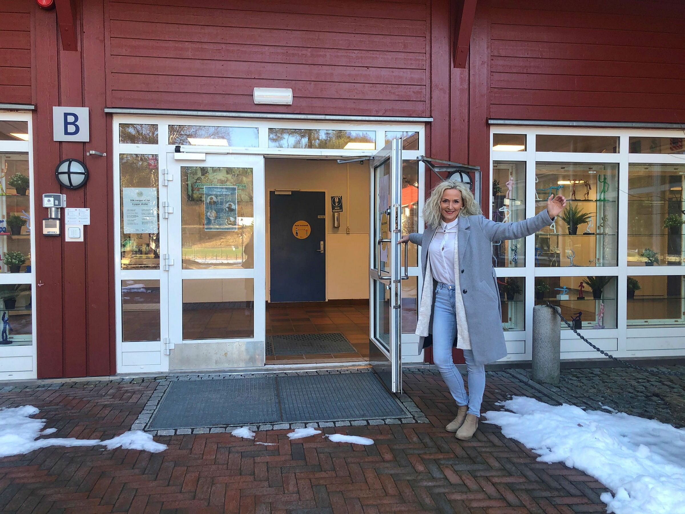 DØRENE ER ÅPNE: Irene Bjerknes Skaland, assisterende rektor ved Bjøråsen skole er glad for at elevene nå får muligheten til å ha undervisning på skolen igjen. Foto: Caroline HammerBilde 1 av 1