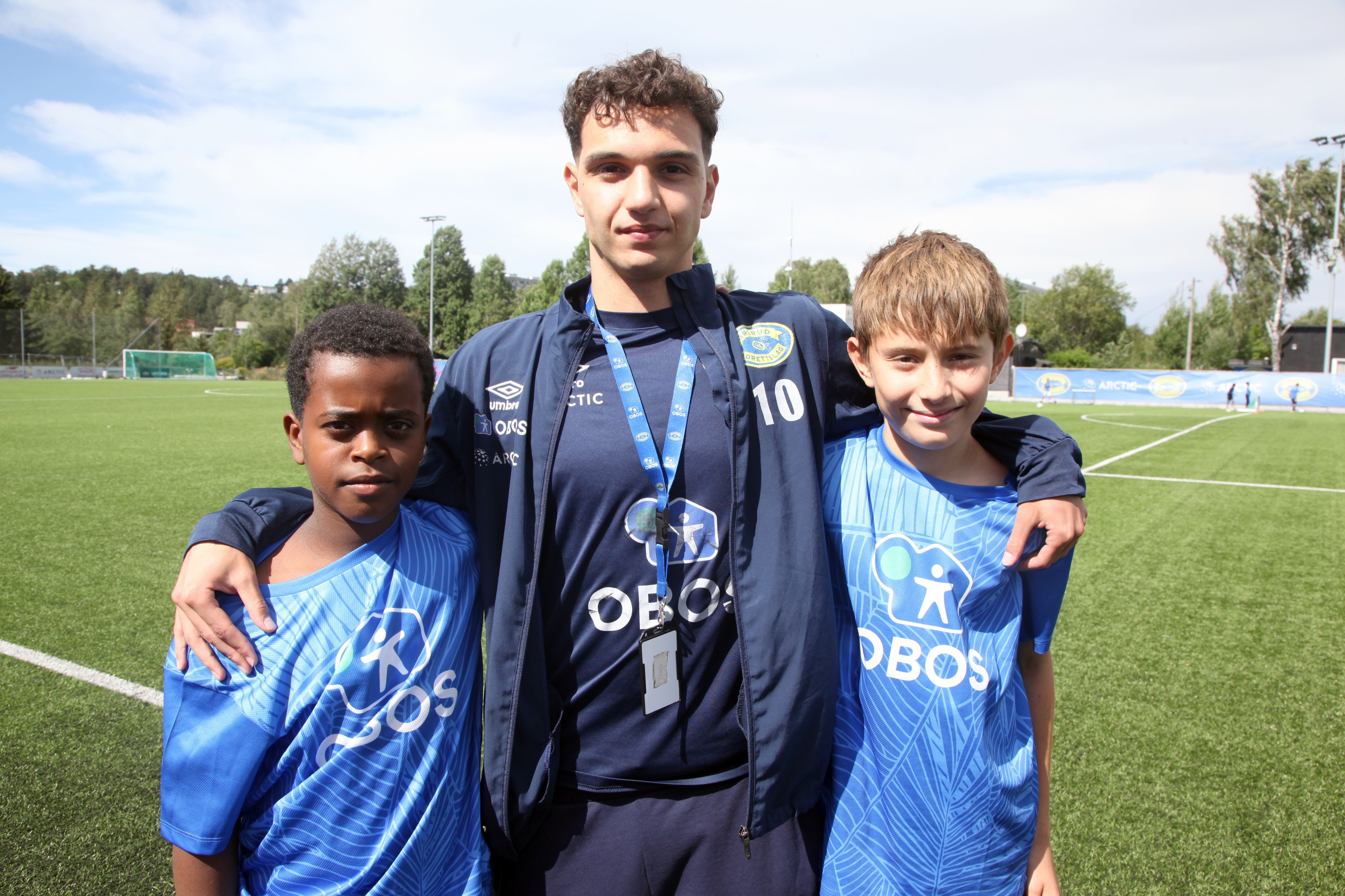 SAMMENSVEISET TRIO: Evenezer (11 f. v.), A-lagsspiller Ayman El-Hammichi og Mustafa (11) stortrives sammen på OBOS Fotballskole på Grorud. Ayman er spesielt stolt over de flotte holdningene guttene har – en selvfølge for at drømmene deres en dag skal kunne gå i oppfyllelse. FOTO: Rolf E. WulffBilde 1 av 5