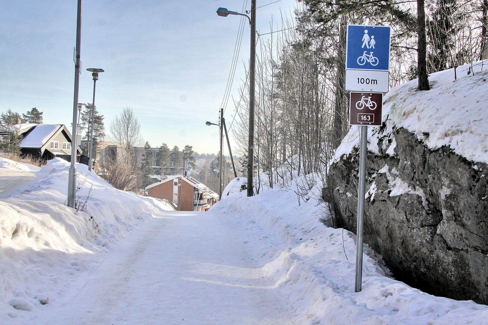 Turvei D11 like ved Stasjonsfjellet skole brukes av turgåere, syklister og skoleelever. Likevel bruker bilførere gangstien som snarvei.