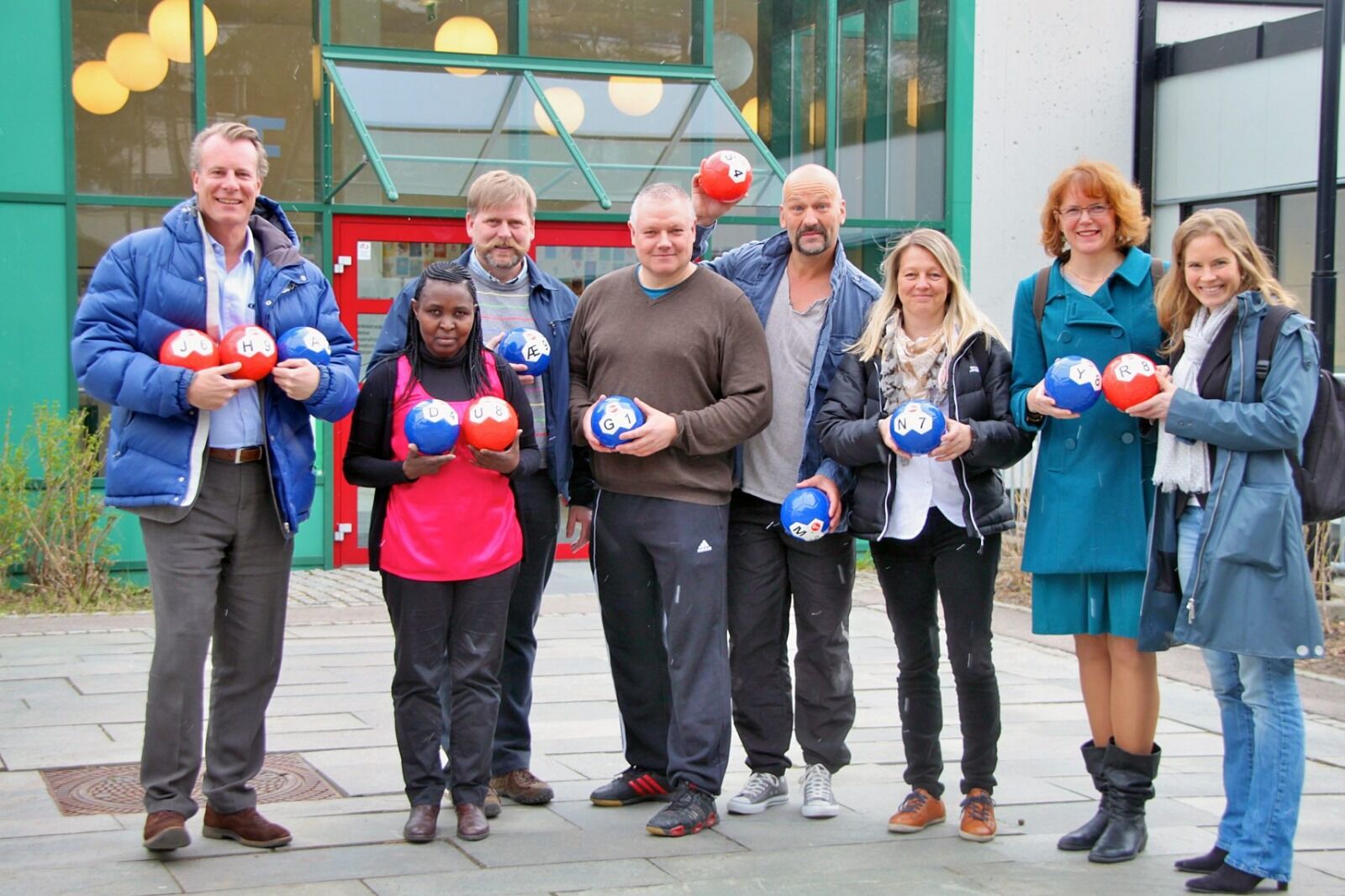 Årvoll-gründerne Tor Sandnes og Glenn Andersen demonstrerte Aball1 for mottaksklassen på Tiurleiken skole. Ferd-sjefene var også på plass, og de lot seg imponere.