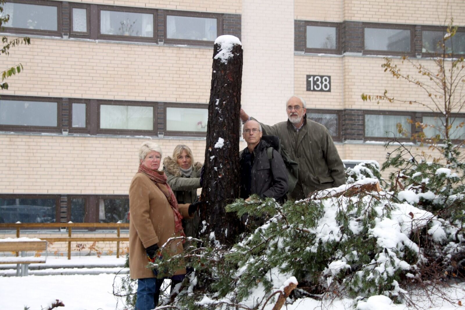 I oktober kom rundskrivet fra styret som informerte om trefelling i borettslaget. «Trefellingen skjer for å begrense muligheten for at alger og sur luft skal skade teglsteinen på blokkene våre.
