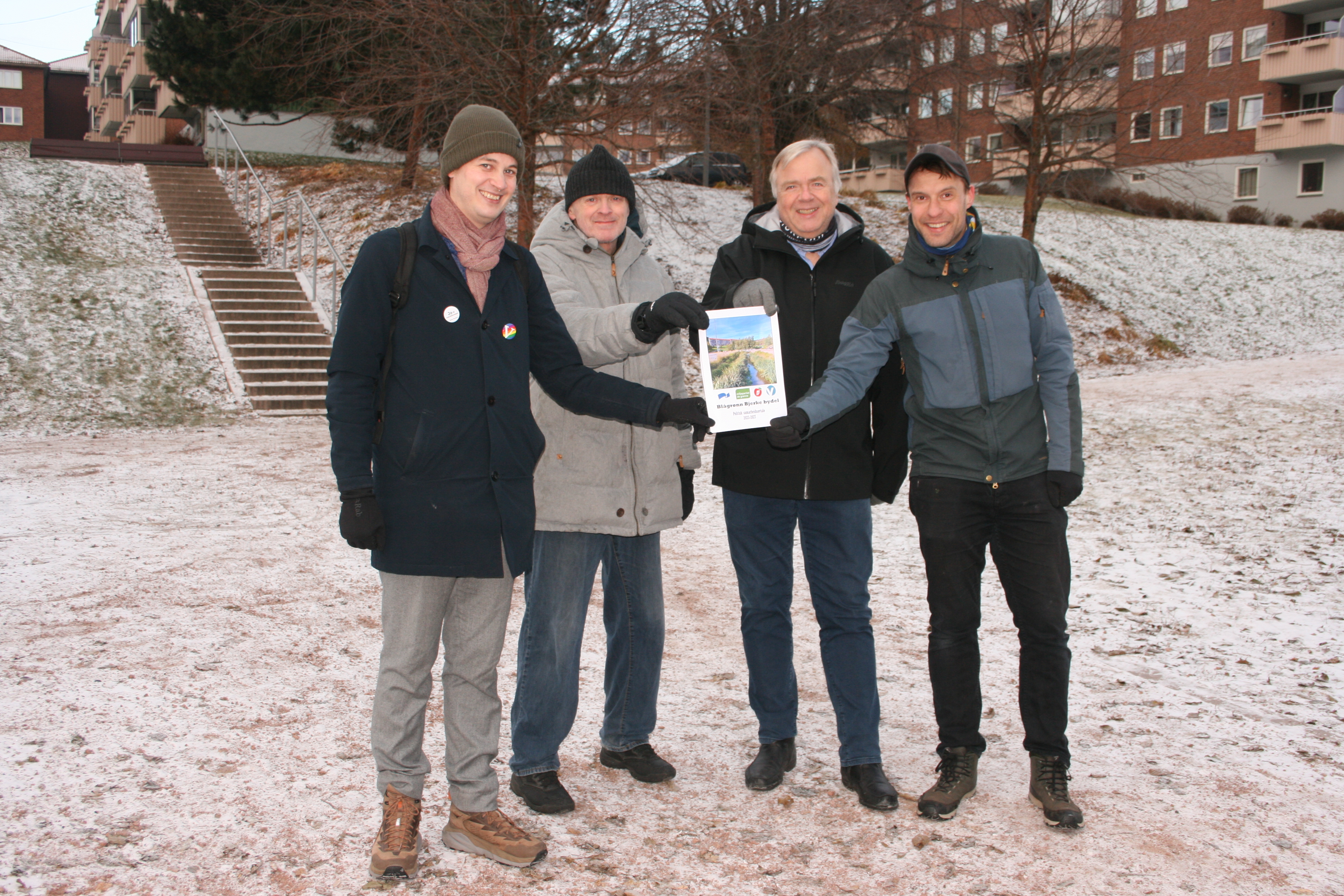OFTEST ENIGE: De blågrønne partiene i Bydel Bjerke har jobbet seg gjennom politikken og har funnet ut at de faktisk stort sett er ganske enige. Her er gruppelederne Aleksander Engevik (V, f.v.), Egil Husmo (H), Jørn Kveseth (Frp) og Adam Tumidajewicz (MDG).Bilde 1 av 2