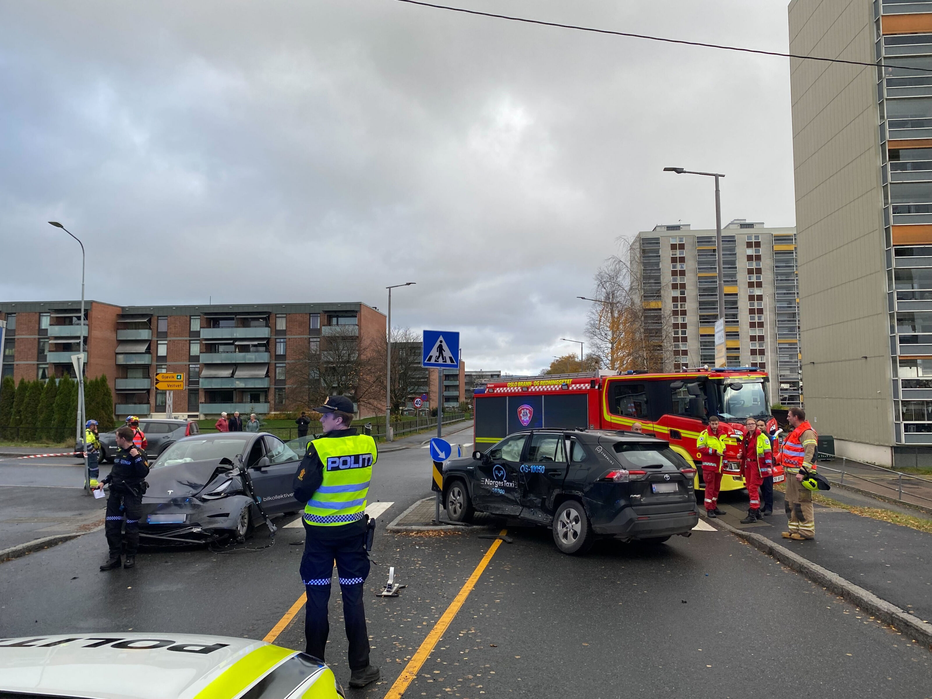 Ved 12-tiden mandag var to biler involvert i en ulykke i Erich Mogensøns vei på Linderud. Hendelsen fant sted i krysset Trondheimsveien og Erich Mogensøns vei ved Linderud senter. Føreren og passasjeren i den ene bilen forlot ulykkesstedet til fots.