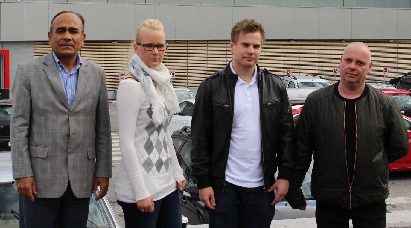 INTEGRERING: Frp mener 2000 syriske flyktninger til Oslo vil øke byens integreringsproblemer. Her står lederne i Groruddalens Frp-lag fra venstre: Ombir Upadhyay (Stovner), Lise Emilia Martinsen (Bjerke), Endre Bodahl (Alna) og Sten-Arvid Fredriksen (Grorud). Foto: