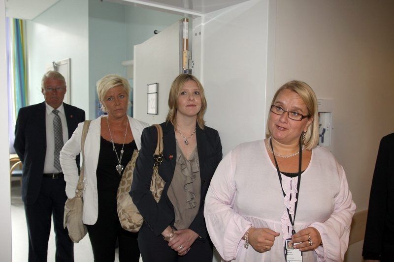 Partileder Siv Jensen er glad for at det fortsatt skal være helsetilbud i bygningene. Frp-politikerne fikk både se avdelinger i full drift, men også nyoppussete, tomme lokaler da de besøkte Aker sykehus.