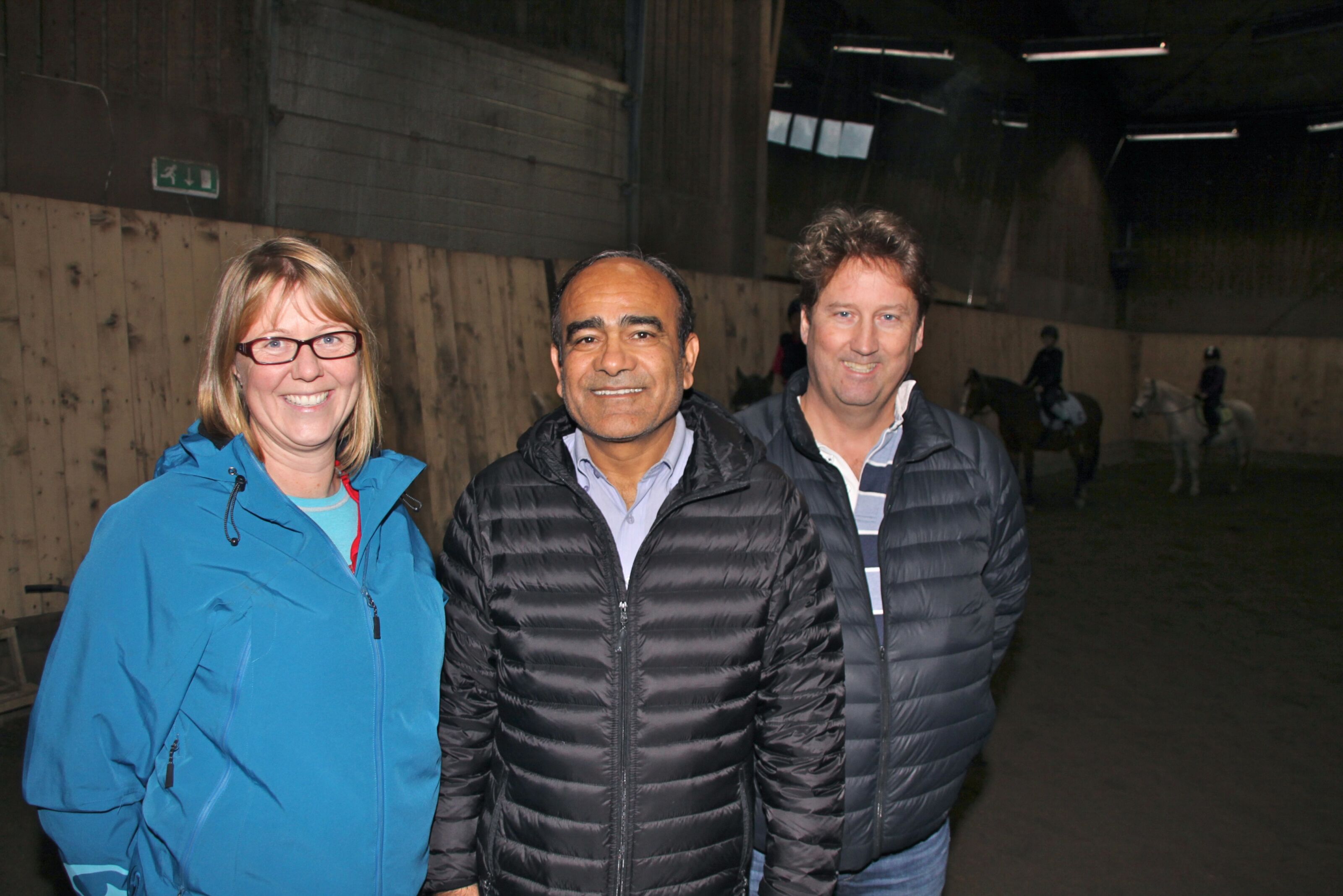 HEST ER BEST: Anne Habberstad (f.v.) ved Stovner ridesenter trenger 3 millioner kroner til å bytte taket. Nå setter Frp av summen i sitt alternative Oslo-budsjett. Her står daglig leder sammen med Ombir Upadhyay og Jan Arild Linja fra Stovner Frp. Foto:Bilde 1 av 1