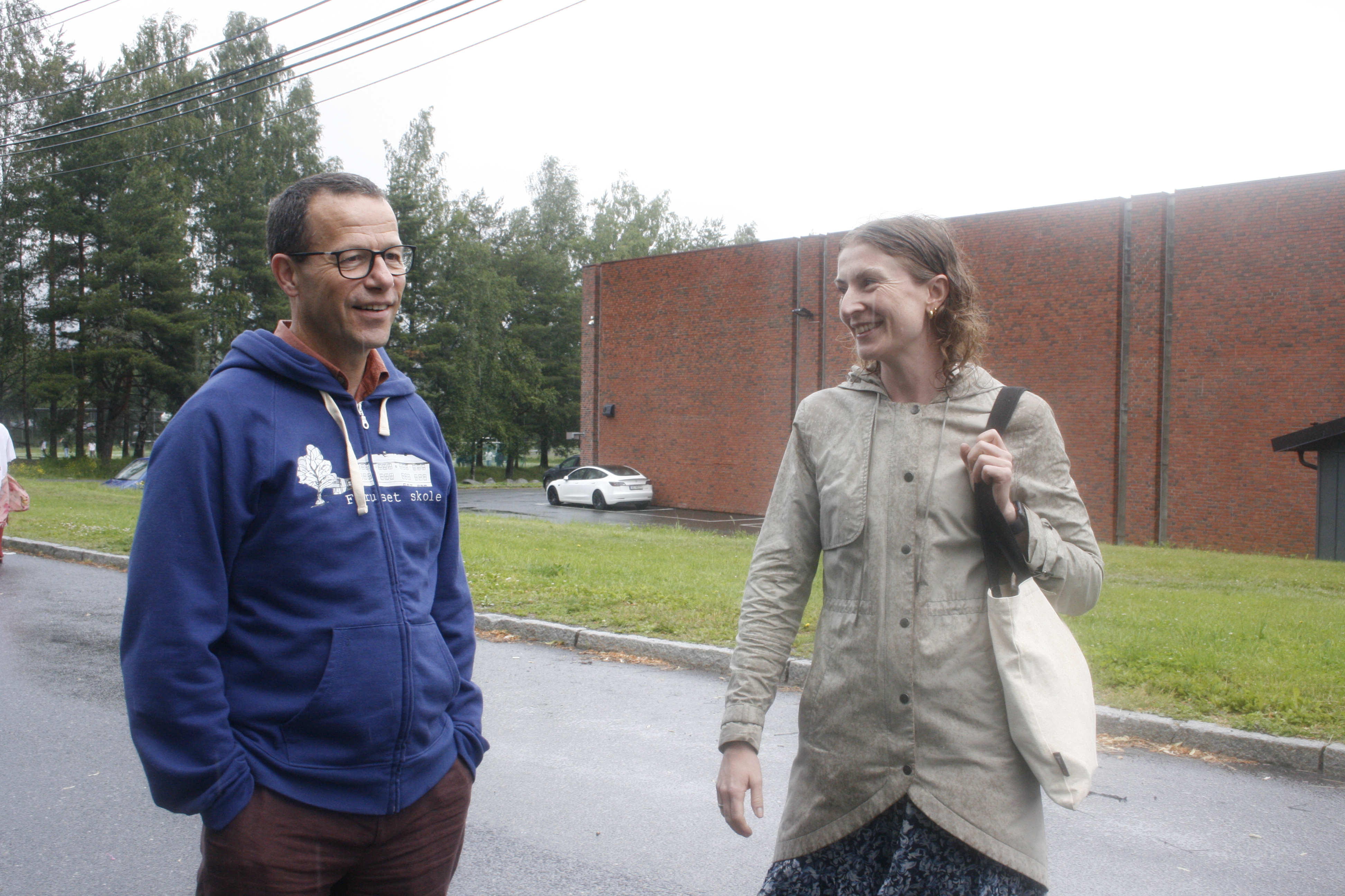 GIR IKKE OPP: Rektor på Furuset skole, Nils Otto Steen-Utheim (t.v.), og Sunniva Holmås Eidsvoll (SV) er ikke fornøyd med at Verdensparken skole er lagt på is. SV-politikeren varsler kamp i bystyret.Bilde 1 av 1