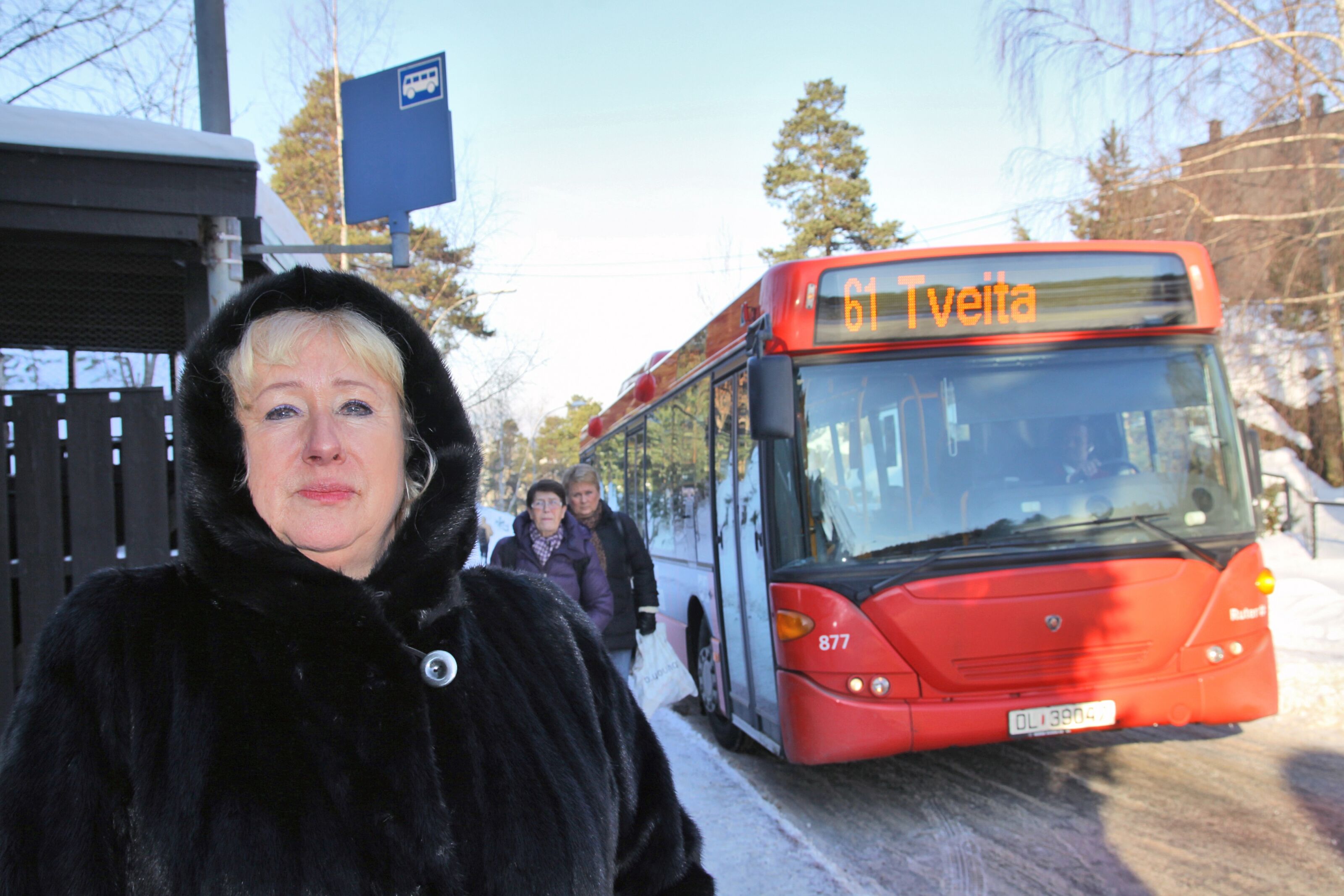 På 61-bussen svirrer det rykter om at nettopp denne bussen står på Ruters kuttliste. Haugerud-beboer Solveig T. Zafar tror flere blir tvunget til å flytte dersom bussen forsvinner.