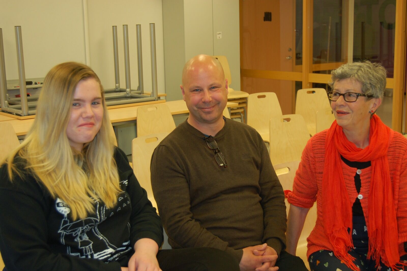 FORNØYDE OG SKEPTISKE: Aurora Maaby (til venstre) fra Ungdomsrådet er fornøyd med det BU skal gjøre med Fyrhuset - og at det blir værende der det er. Det er Jon Julius Sandal (U) og Maren Rismyhr (Rødt) også, men de to sistnevnte frykter for en nedleggelse av flere ungdomsaktiviteter dersom de skal lokaliseres til den fremtidige Grorudhallen. Foto:Bilde 1 av 1