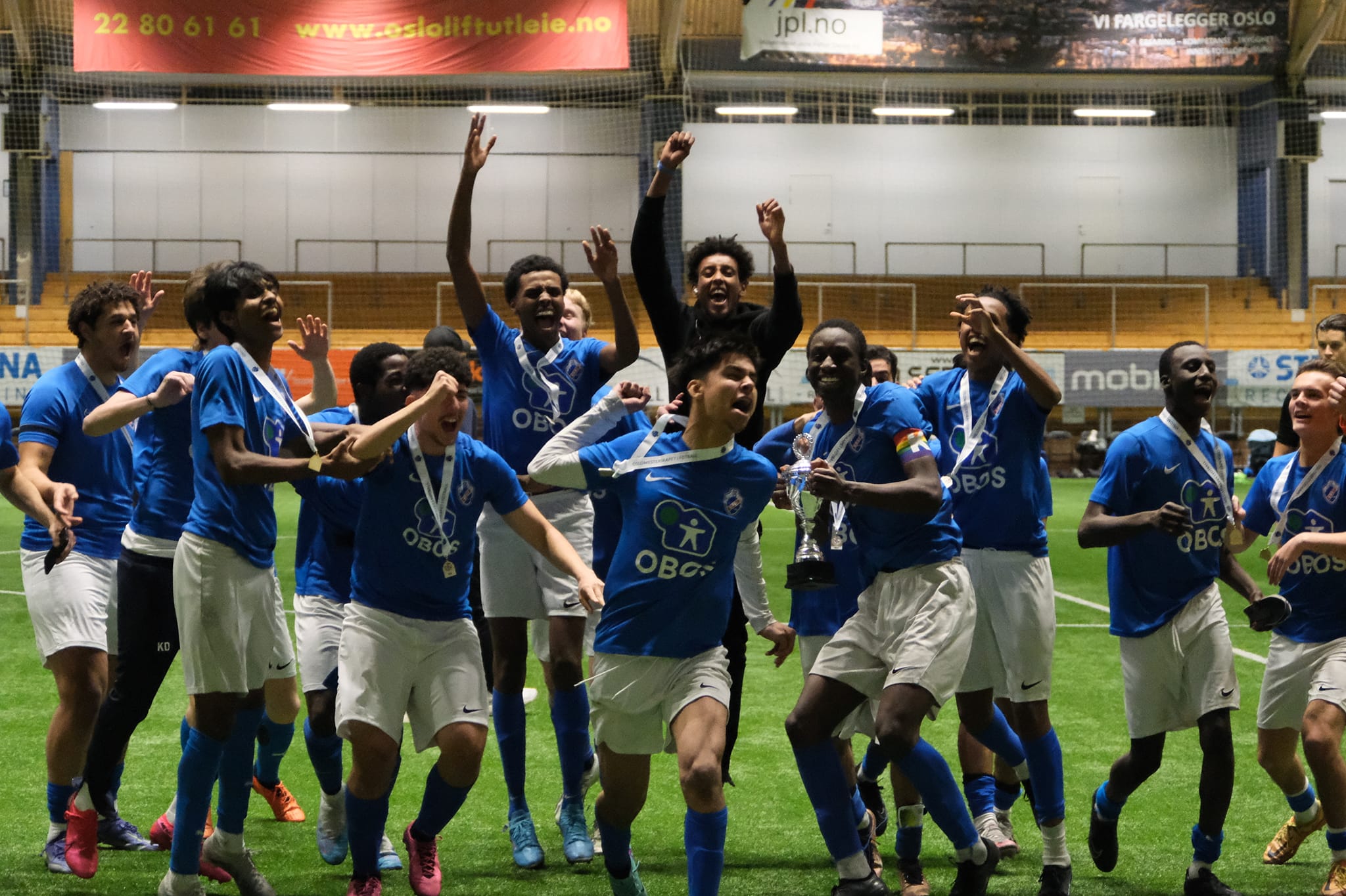 VILL JUBEL: Det var bare å kaste alle hemninger og slippe jubelen løs for Greijuniorene etter at Asker ble slått på straffer i Oslomesterskapet. Foto: SF GreiBilde 1 av 2