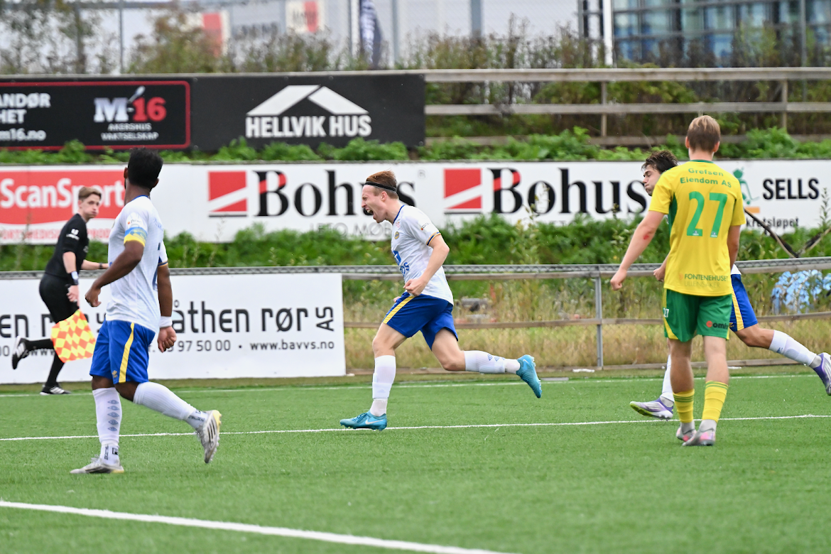 SÅ MYE BETYR DET: Simen Heggdal Beck jubler etter sitt fantastiske langskudd som sikret Grorud seieren mot Ullensaker/Kisa. FOTO: Kenneth BergerBilde 1 av 4