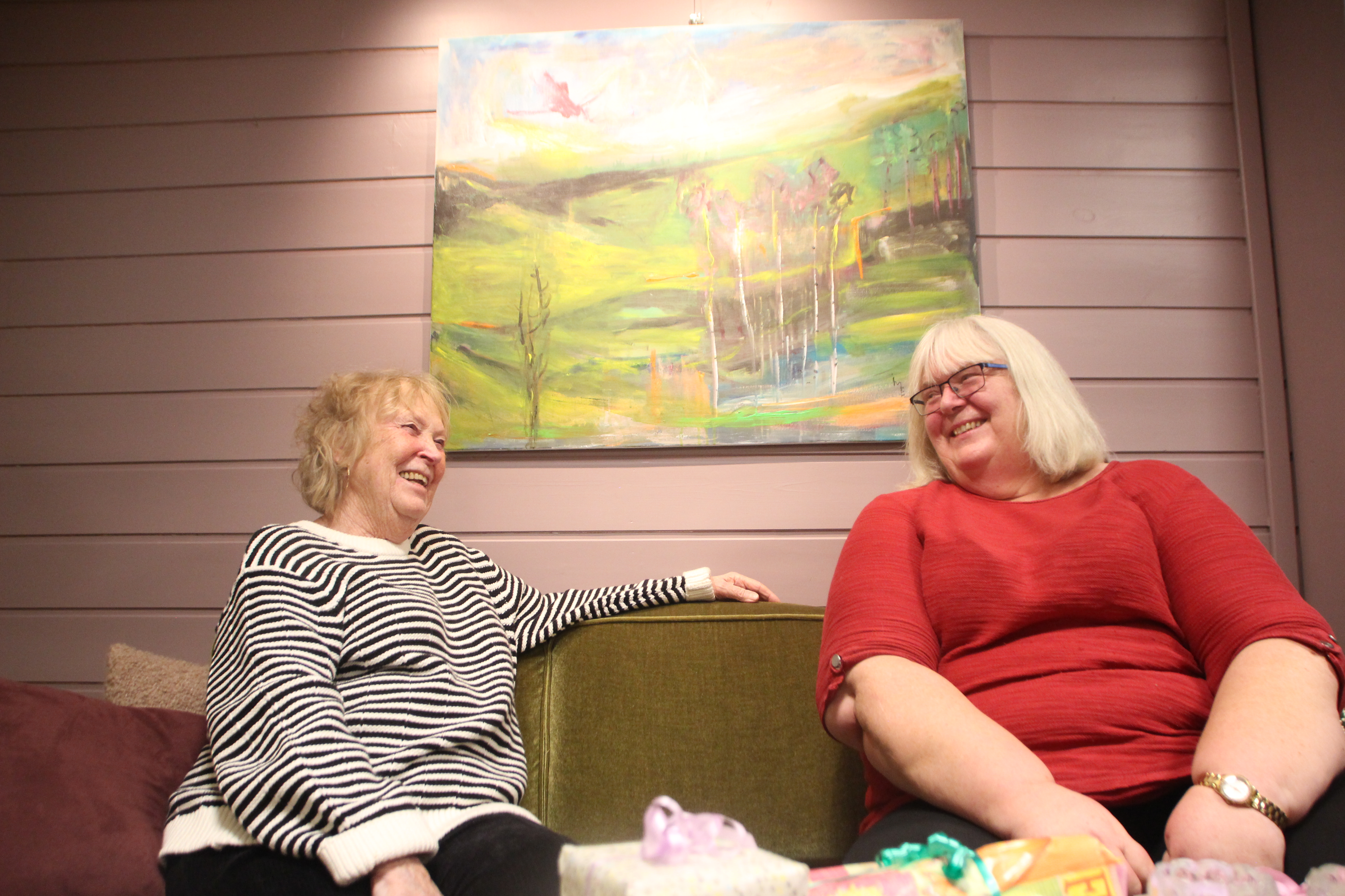 SPRE KUNSTINTERESSE: Det er vel i bunn og grunn hovedprosjektet for Irene Østenseth (t.h.), Inger Margrethe Eriksen og resten av Groruddalen Kunstforening. FOTO: Ørjan Brage