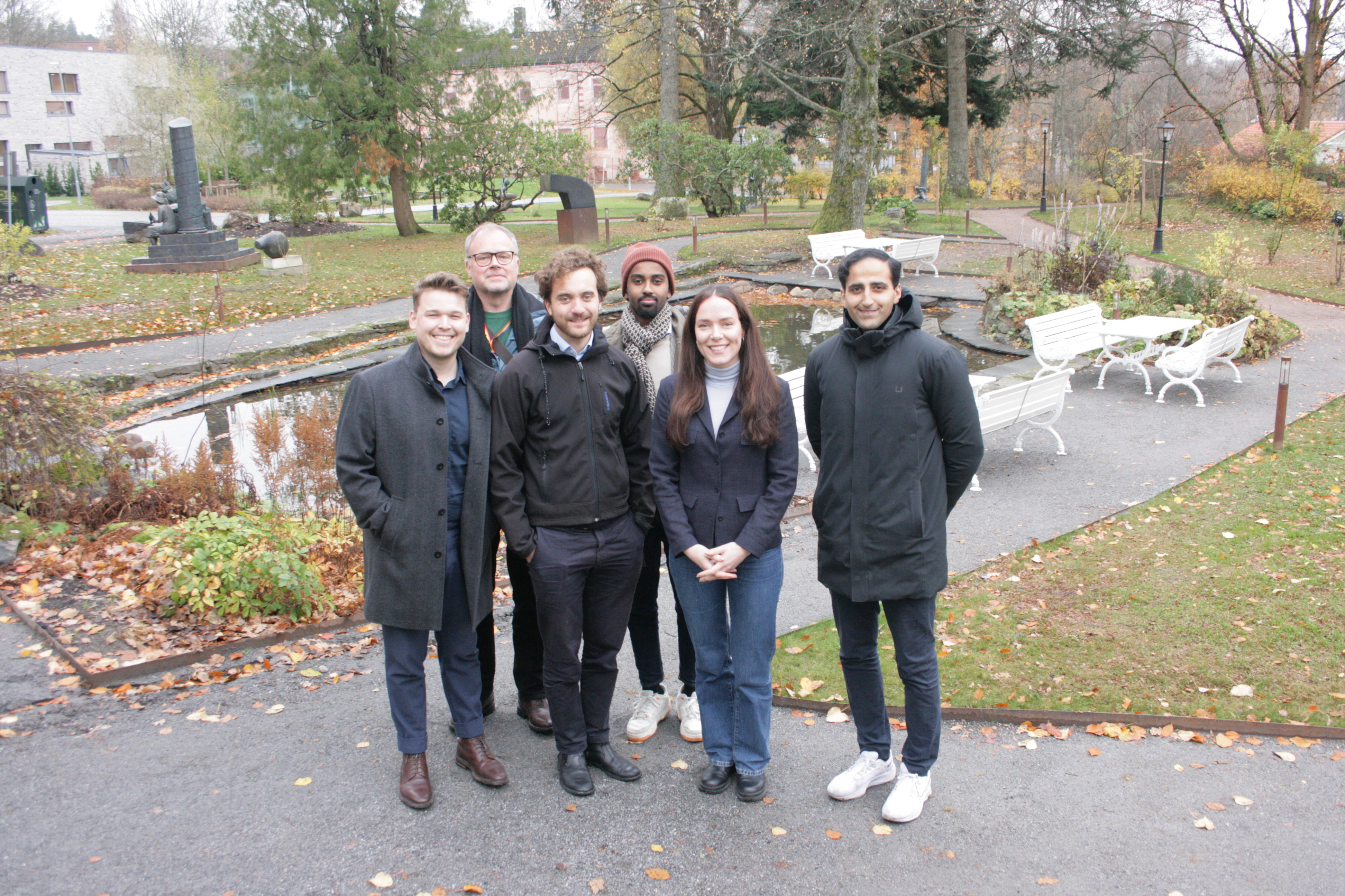 Espen Ophaug (V, bak f.v.), Roble Wais (H), Phillip André Charles (H, foran), Tor Frøytvedt Dahl (V), Ingeborg Tennes (H) og Hassan Nawaz (H).Bilde 1 av 1