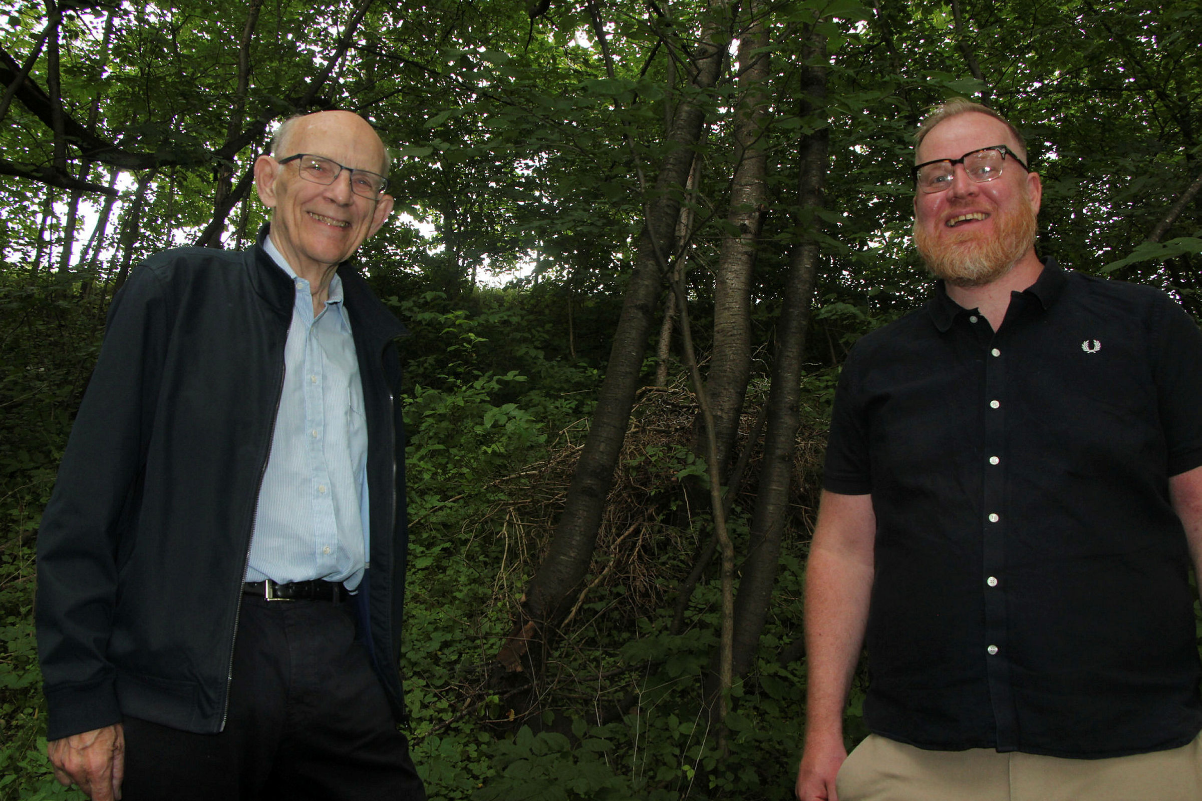 BJERKE/LUNDEN: Smilet sitter løst når Dag Tveit Bråthen (t.v) og Jon Sandven kan senke skuldrene etter mangeårig kamp, vel vitende om at planene om å bygge sosialboliger i Trondheimsveien 301-303 nå skrinlegges. Foto: Sindre Veum ApnesethBilde 1 av 1