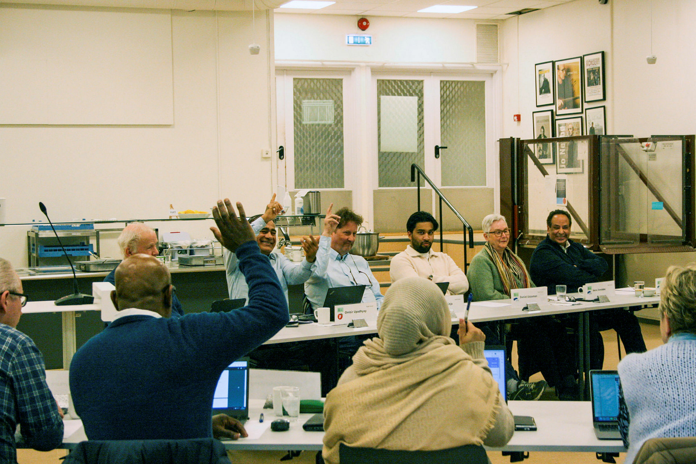 VOTERING: Fremskrittspartiet og Rødt viste stemmetegn da forslaget om midlertidige brakker var oppe for votering. Foto: Mina WathneBilde 1 av 1