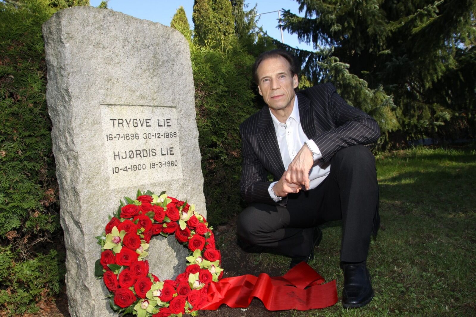 Hedret Trygve Lie ved graven på Grorud