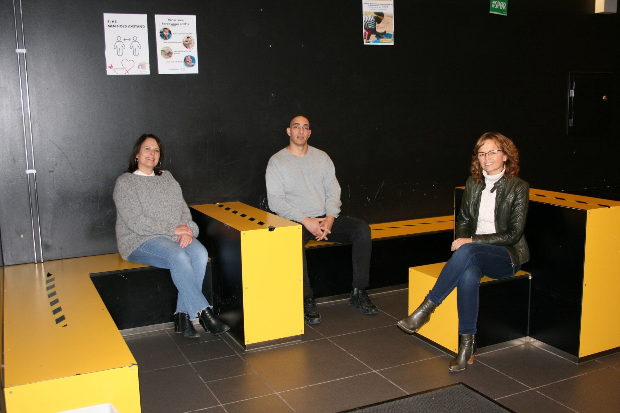 AVSTANDSREGLER: Assisterende rektor Mette Olden (t.v.), miljøarbeider Izzet Karatepe og rektor Synnøve Aas Gulvik på noen av de oppmerkede sitteplassene i gangen på Bjerke videregående. Foto:Bilde 1 av 1 Hektisk omstilling til ny skolehverdag Caroline Hammer Publisert 12. nov 20 kl. 12:00 Del på sosiale medier Del Facebook Twitter E-post Abonnement