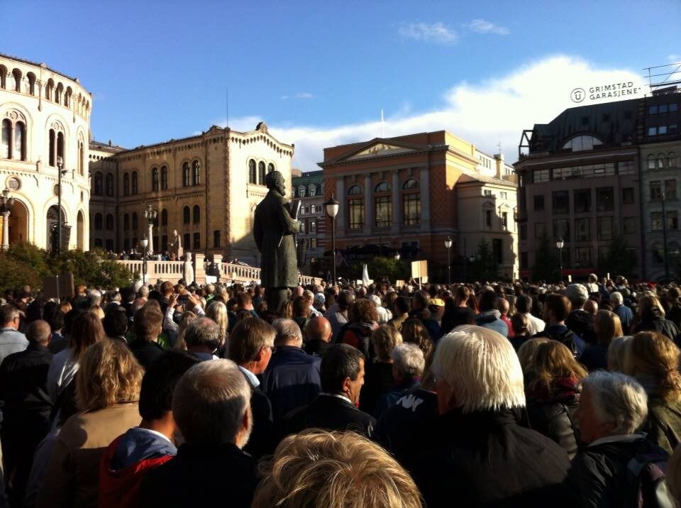 MANGFOLDIG: Fem tusen mennesker med ulik bakgrunn samlet seg foran Stortinget mandag for å vise sin nulltoleranse overfor terrorisme og ekstremisme (Foto: Yassine Arakia). Foto:Bilde 1 av 2For å se disse bildene må du ha et abonnement «Hele byen» demonstrerte Elisabeth Tobiassen Faane Publisert 28. aug 14 kl. 07:00 Del på sosiale medier Del Facebook Twitter E-post Nyhetsbrev Facebook Instagram Abonnement