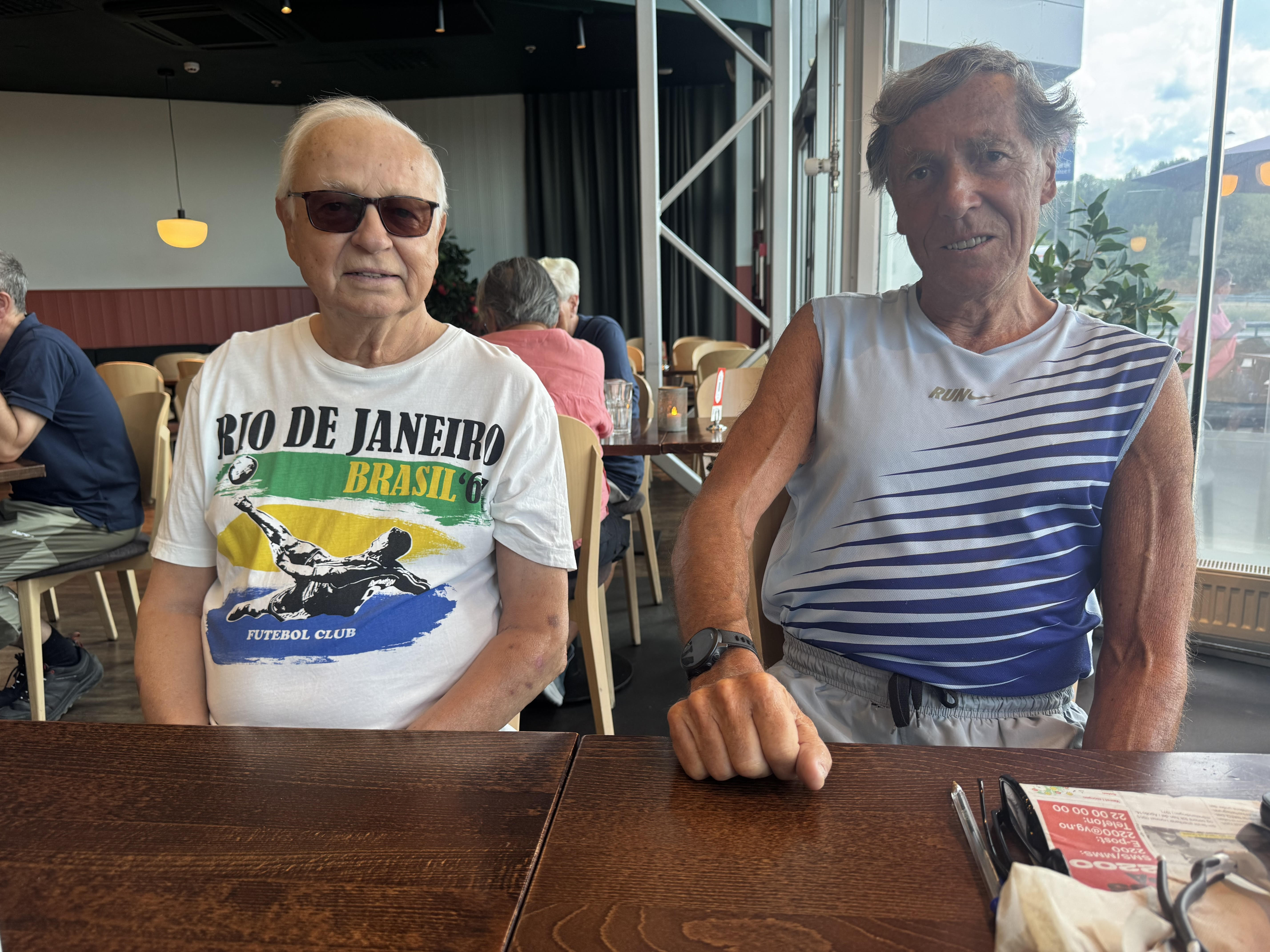 ER TILBAKE: Svein Skarnæs og Henning Wibeto forteller om den dramatiske lørdagen på Tveita senter. De var to av mange som var tilbake igjen på Jordbærpikene mandag. Bilde 1 av 4