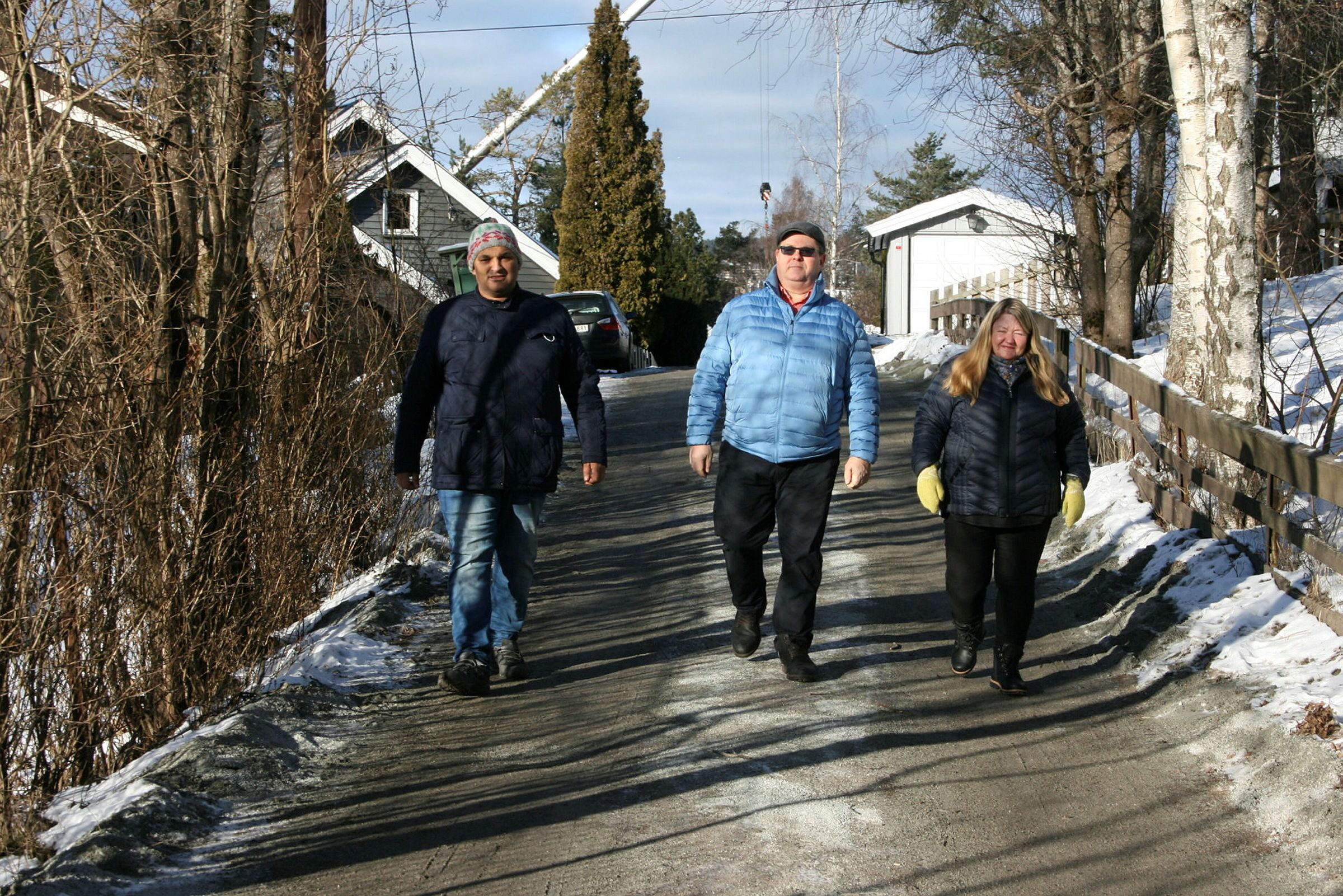TIL MINNE: BU-leder i Bydel Stovner, Rashid Nawaz (f.v.), Jon-Inge Sogn og Linda Sogn setter pris på at beboerne på Høybråten ønsket å hedre Isabel med veinavn rett ved barndomshjemmet. Foto: Caroline HammerBilde 1 av 2