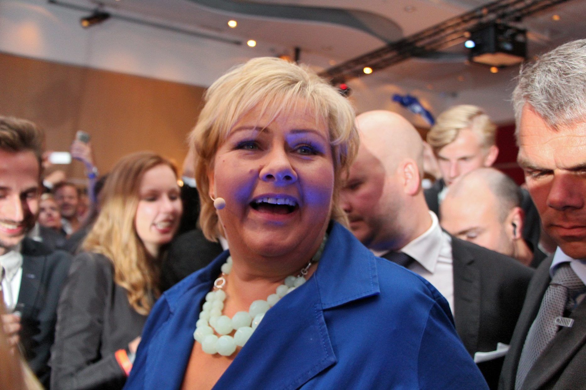 - I dag har dere vært med på å skrive historie. Velgerne har bestemt at Høyre igjen skal få statsminister, sa Erna Solberg mens jubelropene fylte hele lokalet.