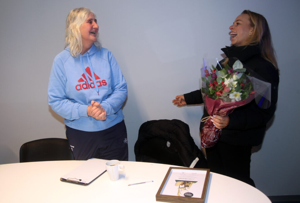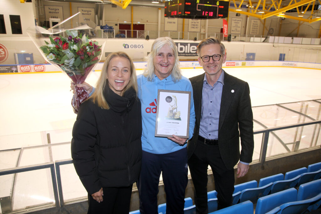 – Kari, fra hele hjertet. Takk. Ikke for kampene du har vunnet. Ikke for titlene du kunne bære. Men for alle gangene du har gjort en liten jente trygg på seg selv. For alle gangene du har knyttet skøyter, tørket tårer, heiet, ledd, løftet og støttet. For alle lørdagsmorgener. For alle de små øyeblikkene som ingen kameraer ser. For jobben som faktisk betyr noe. Du er en bauta i Furuset. Du er en pionér i norsk kvinneidrett. Du er en ildsjel i ordets reneste betydning. Og i dag – i dag er du vår helt. Gratulerer. Vi står bak deg – hele veien.