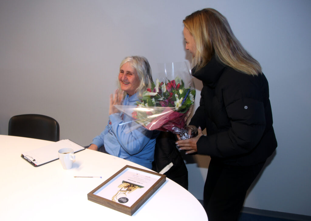 Da Kari så hvem som kom inn på kontoret med blomster og diplom i hånda, med kamera og et kobbel av mennesker på slep, så hun ut som et spørsmålstegn.