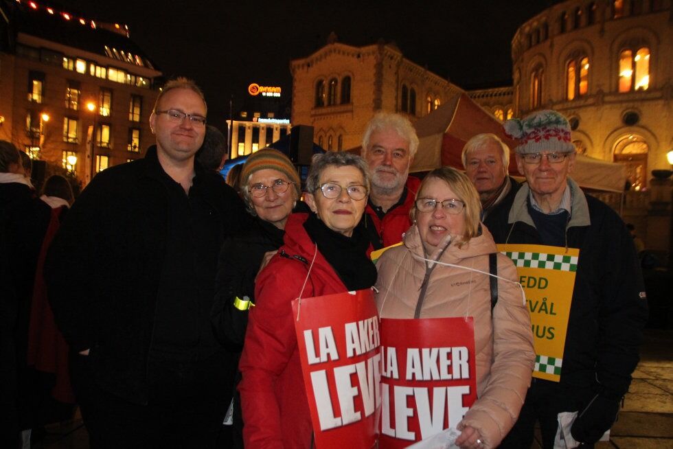 FOR AKER: Dag Einar Thorsen (t.v.), Anne-Grethe Wagner, Maren Rismyhr, Ellen Vilhelmsen, Torleif Støylen og Odd Magne Haugen tok alle turen fra Groruddalen til Stortinget for å vise at de ikke gir seg før de blir hørt. Foto:Bilde 1 av 2For å se disse bildene må du ha et abonnement I fakkeltog for Ullevål – og Aker Martine Myhre Publisert 28. nov 19 kl. 18:27 Del på sosiale medier Del Facebook Twitter E-post Abonnement