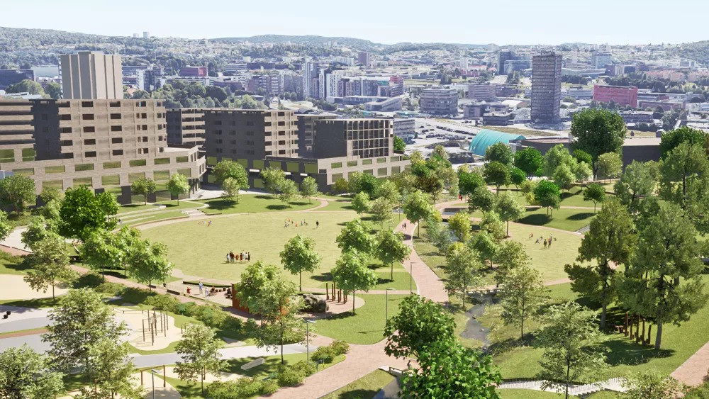 Den nye reguleringen som EBY nå er i gang med, vil innebære at boligfeltet nærmest Dag Hammarskjölds vei omreguleres til å bli en del av parkanlegget. De to øverste boligfeltene, felt 1 og 2, skal fortsatt brukes til boliger.