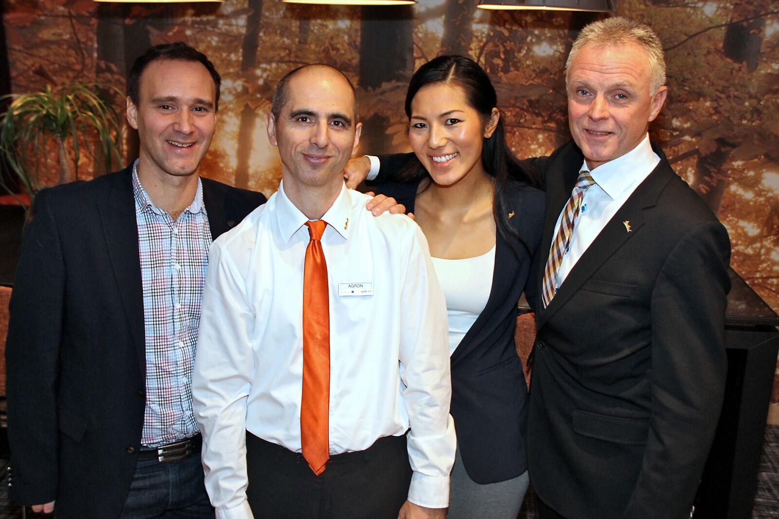 ETTER SEKS ÅR: Agron Sulejmani (foran midten) kan senke skulderne etter å ha fått jobb på Radisson Blu. Jan Mario Martone (t.v.) fra Karea, og An Nguyen og hotelldirektør Olav Brommeland mener det er viktig at næringslivet hjelper folk som har falt utenfor inn i arbeidslivet igjen. Foto:Bilde 1 av 1