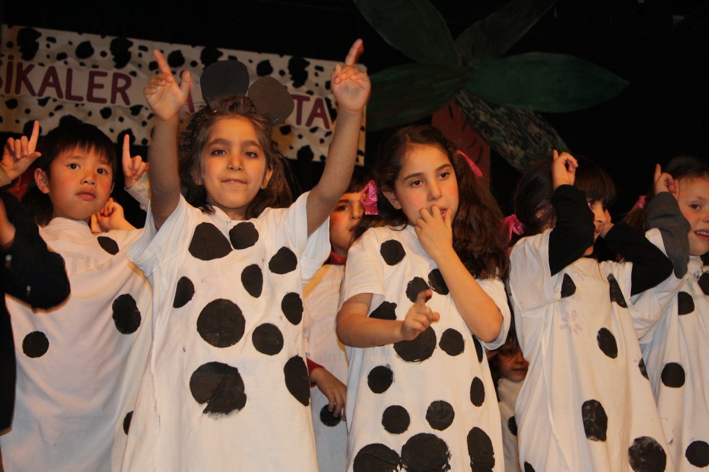 Dina (7) var en av de 210 elevene fra Tveita skole som sto på scenen foran en fullsatt sal. Hun spilte en av valpene i 101 dalmatinere.