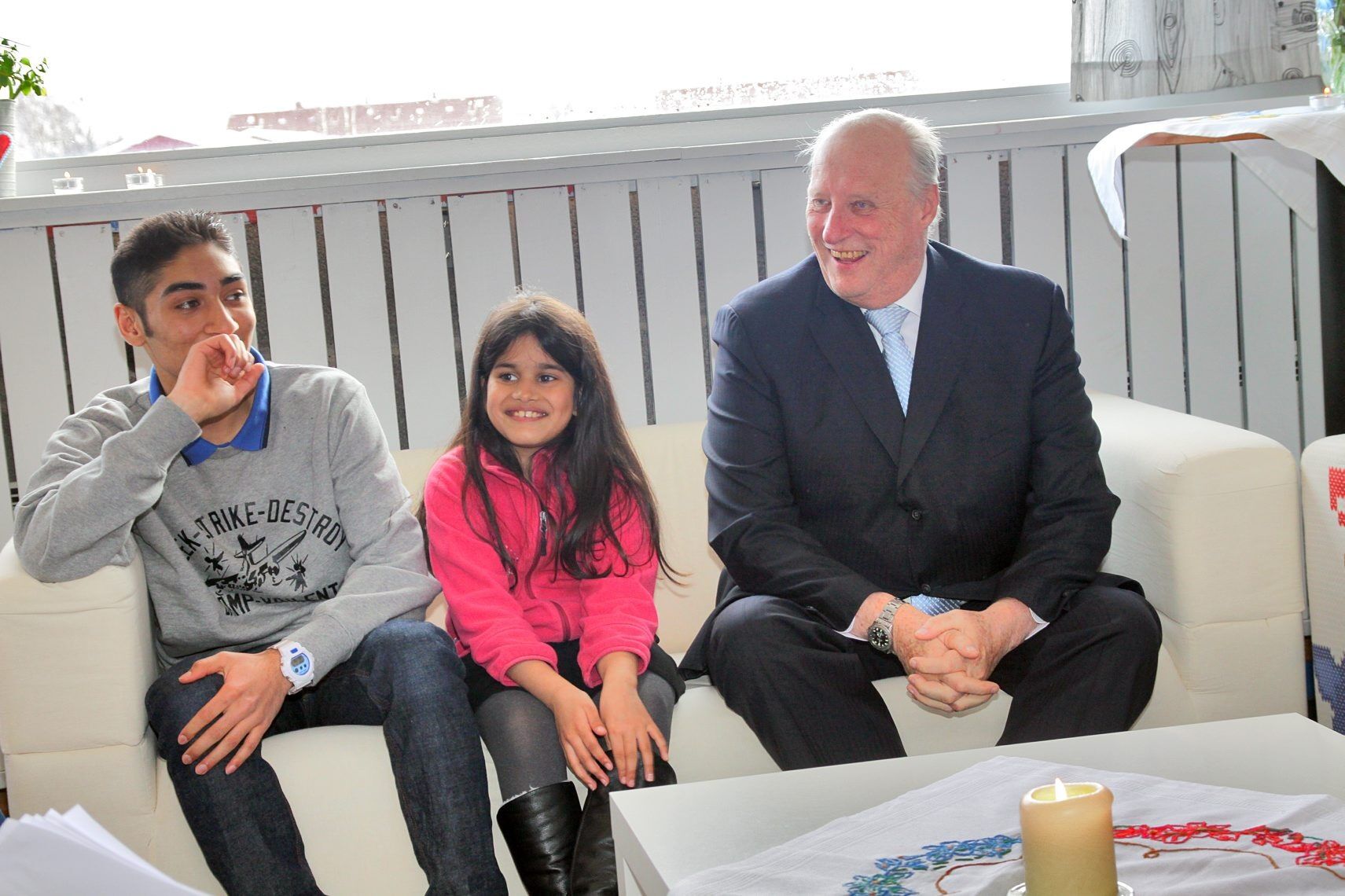 Sharik (15) og Aisha (9) delte sofa med Kongen på Ammerudklubben.