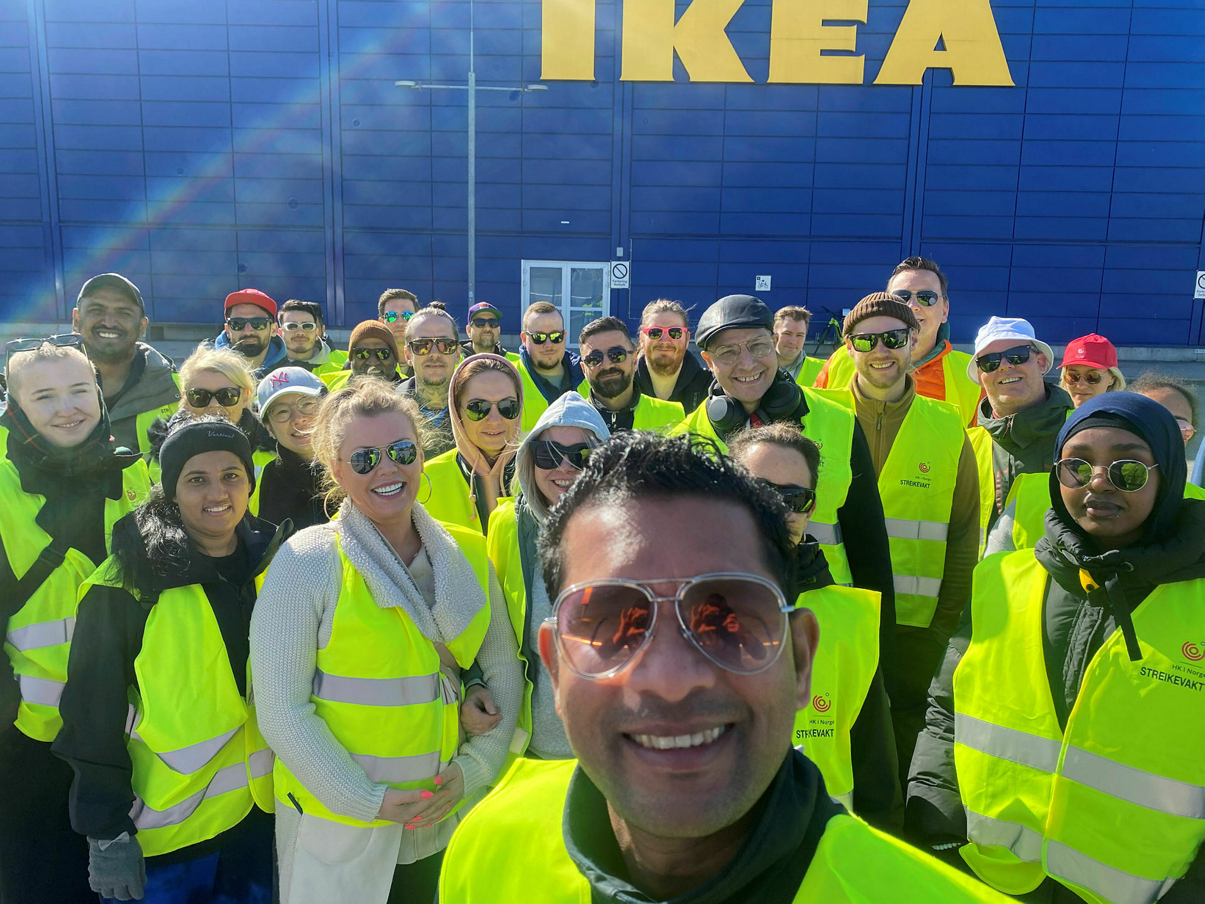 STÅR SAMMEN: IKEA Furuset holder stengt mens streiken pågår, og det kan varehuset forbli en liten stund, for IKEAs ansatte på Furuset sier de er forberedt på å streike så lenge det trengs. Baden Paul i front. Foto: Sindre Veum ApnesethBilde 1 av 1