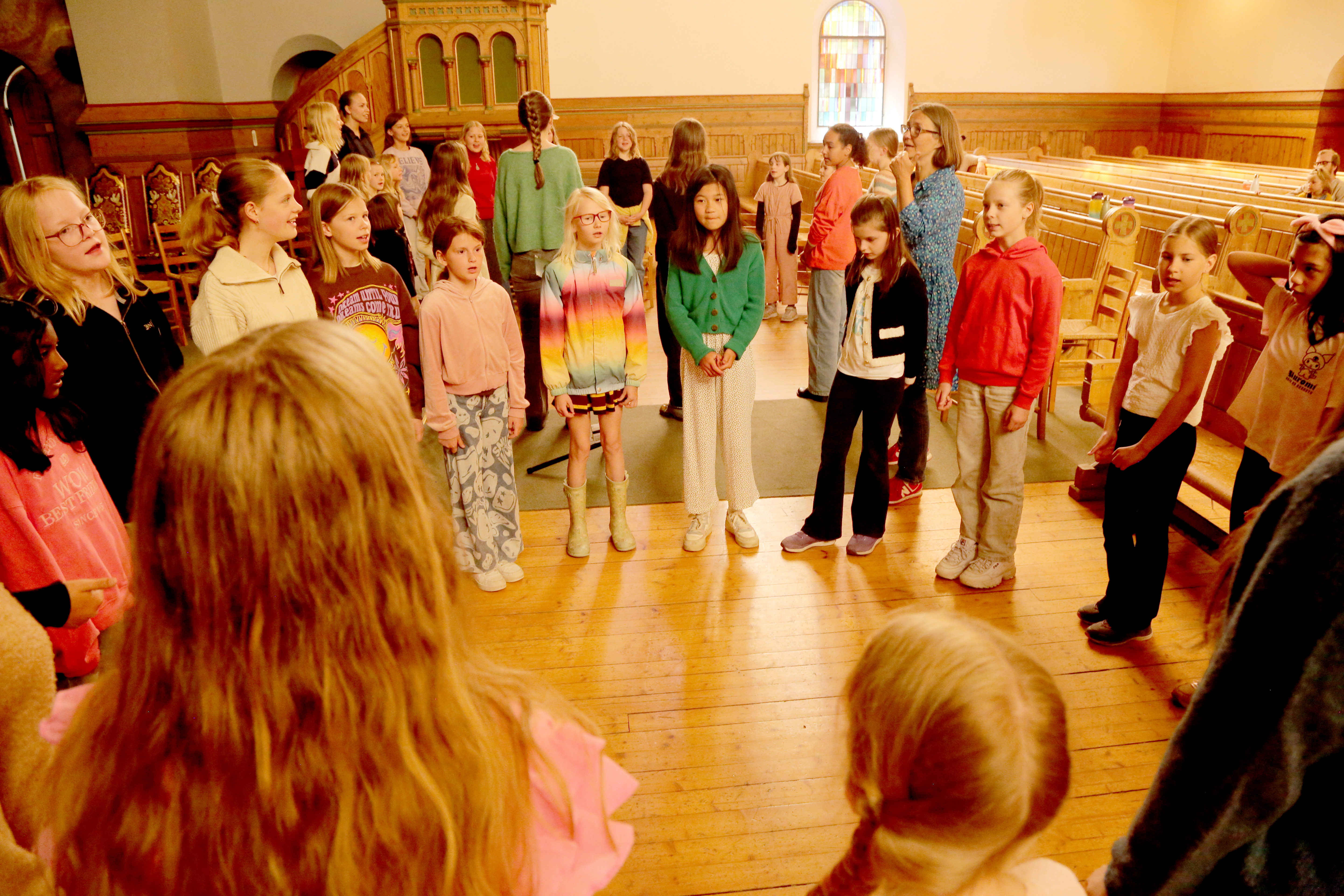 Seksten lokale jenter møtte opp da Det Norske Jentekor holdt seminar og konsert i Grorud kirke. Jenny Sarawanan håper at hun etter hvert vil bli en del av det kjente koret som opprinnelig ble etablert som NRKs jentekor i 1947.