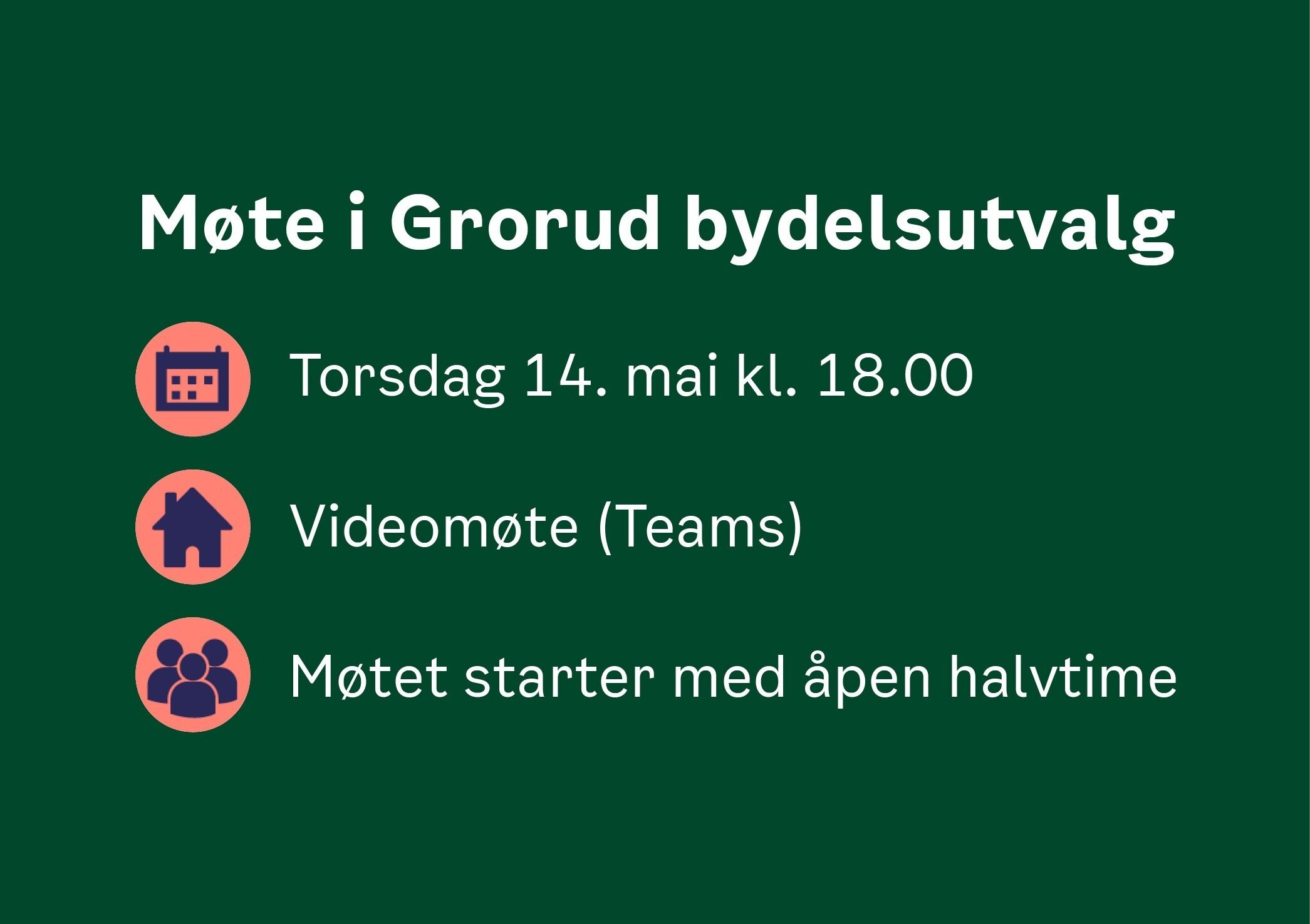 Oversikt over møtetidspunkt og saksdokumenter finner du på bydelens nettsider. Her vil det også være en kort instruks om hvordan du kan delta i møtene gjennom innlogging i Microsoft Teams. Løsningen krever at du tar kontakt med møtesekretær, slik at du får tilsendt en lenke for innlogging.