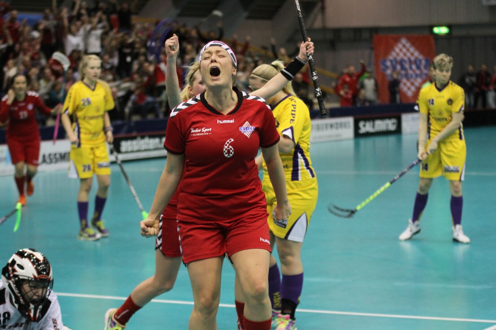 AVGJØRENDE SCORING: Banens beste Sveiva-spiller Jenny Vestin satte inn det viktige utlikningsmålet som skaffet Sveiva ekstraomgang i NM-finalen mot Tunet. Foto: Kay Grue ThorsenBilde 1 av 1